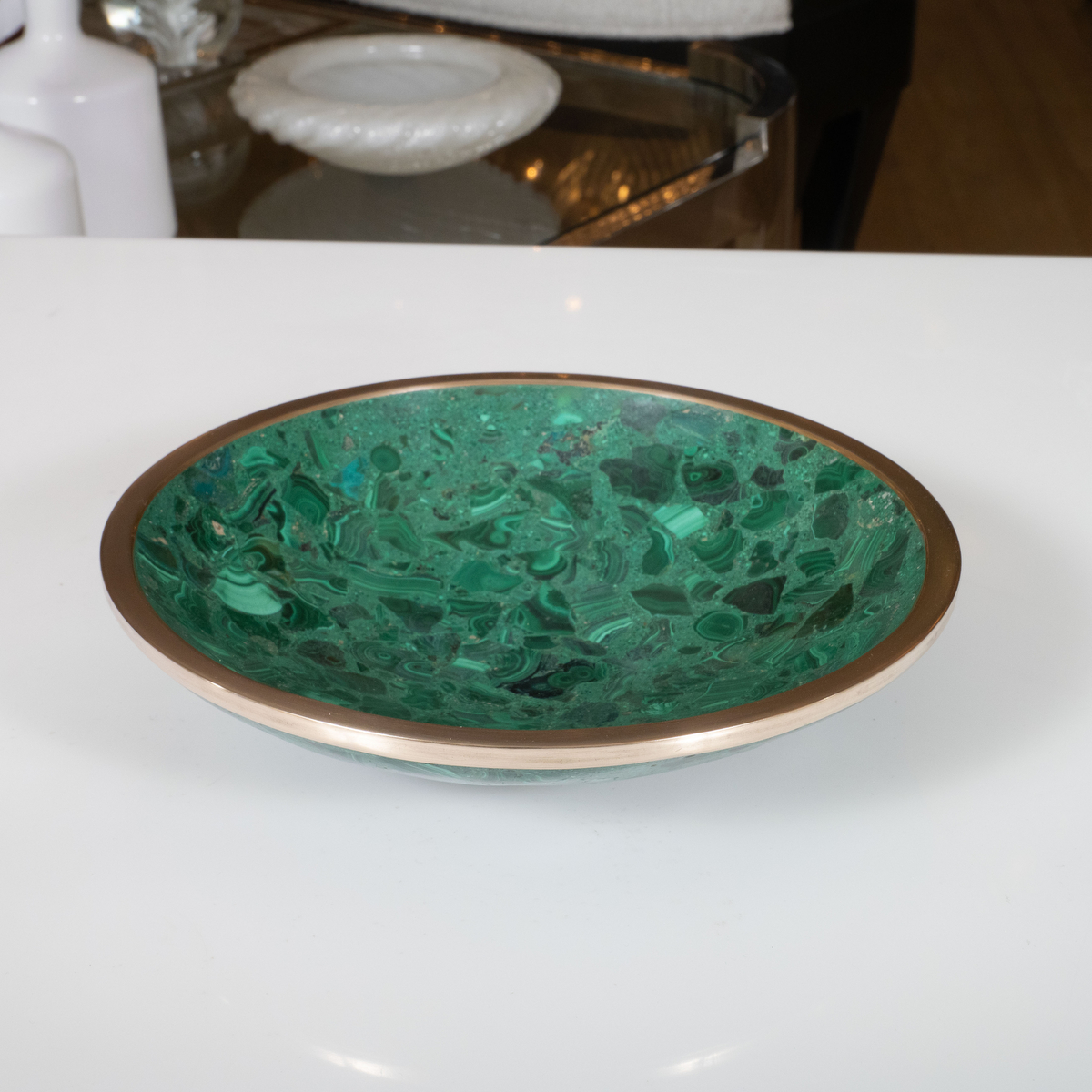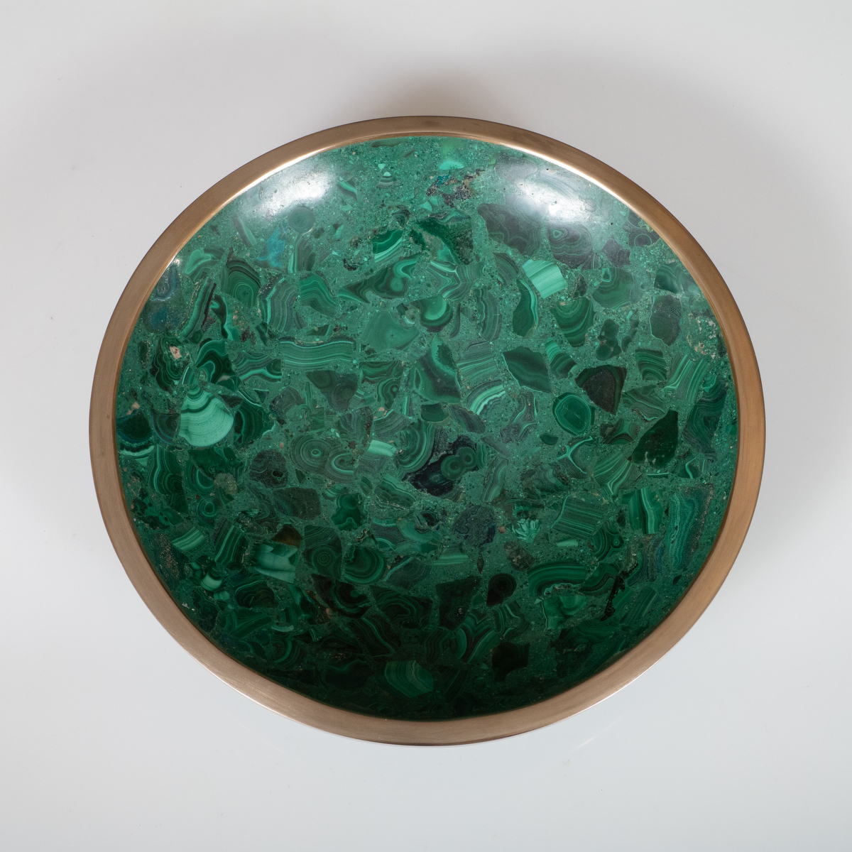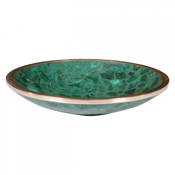 Brass trimmed malachite bowl