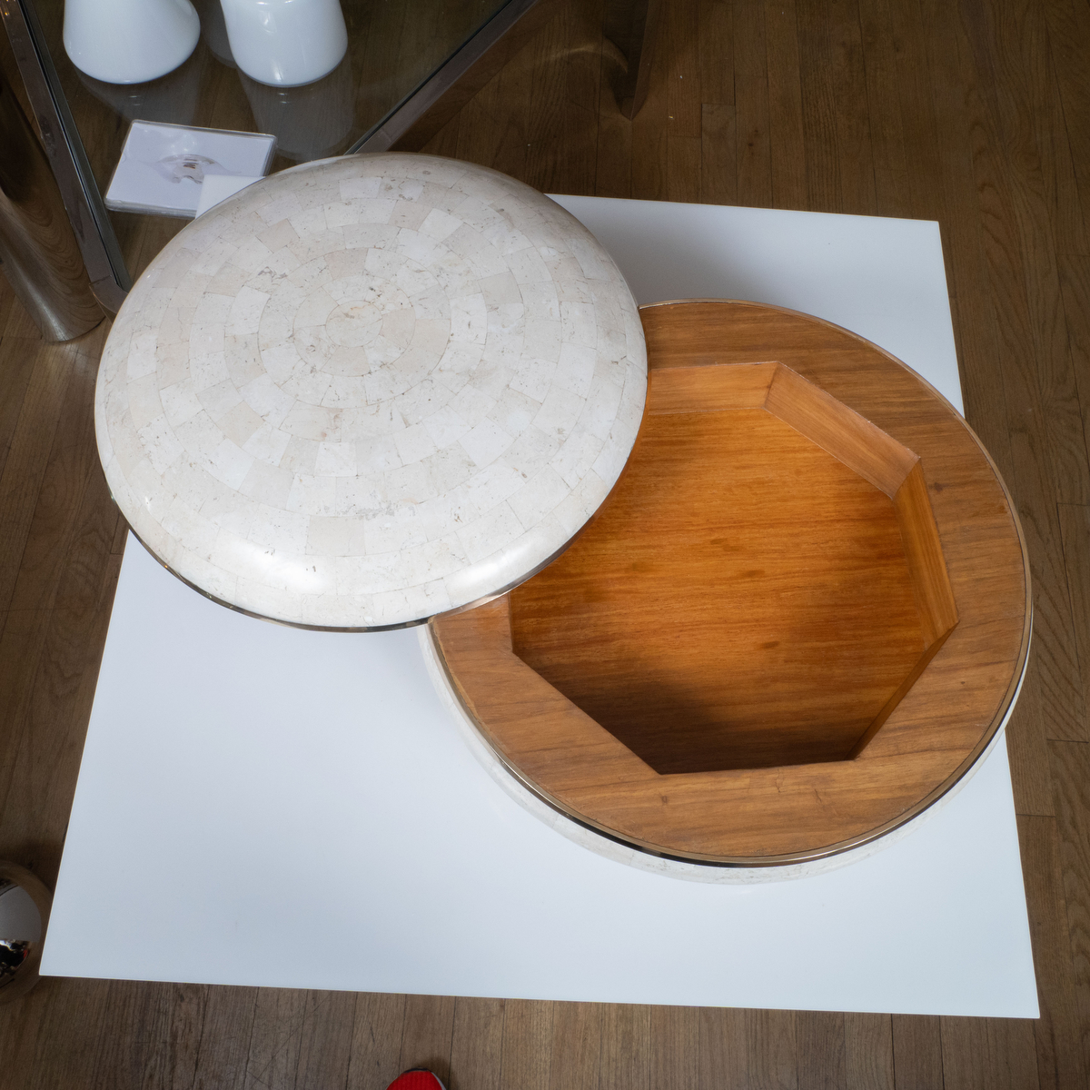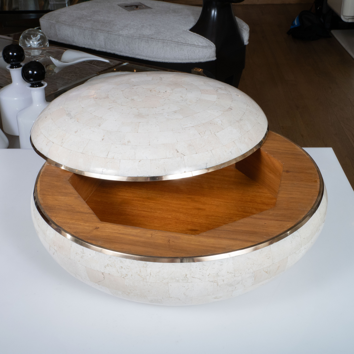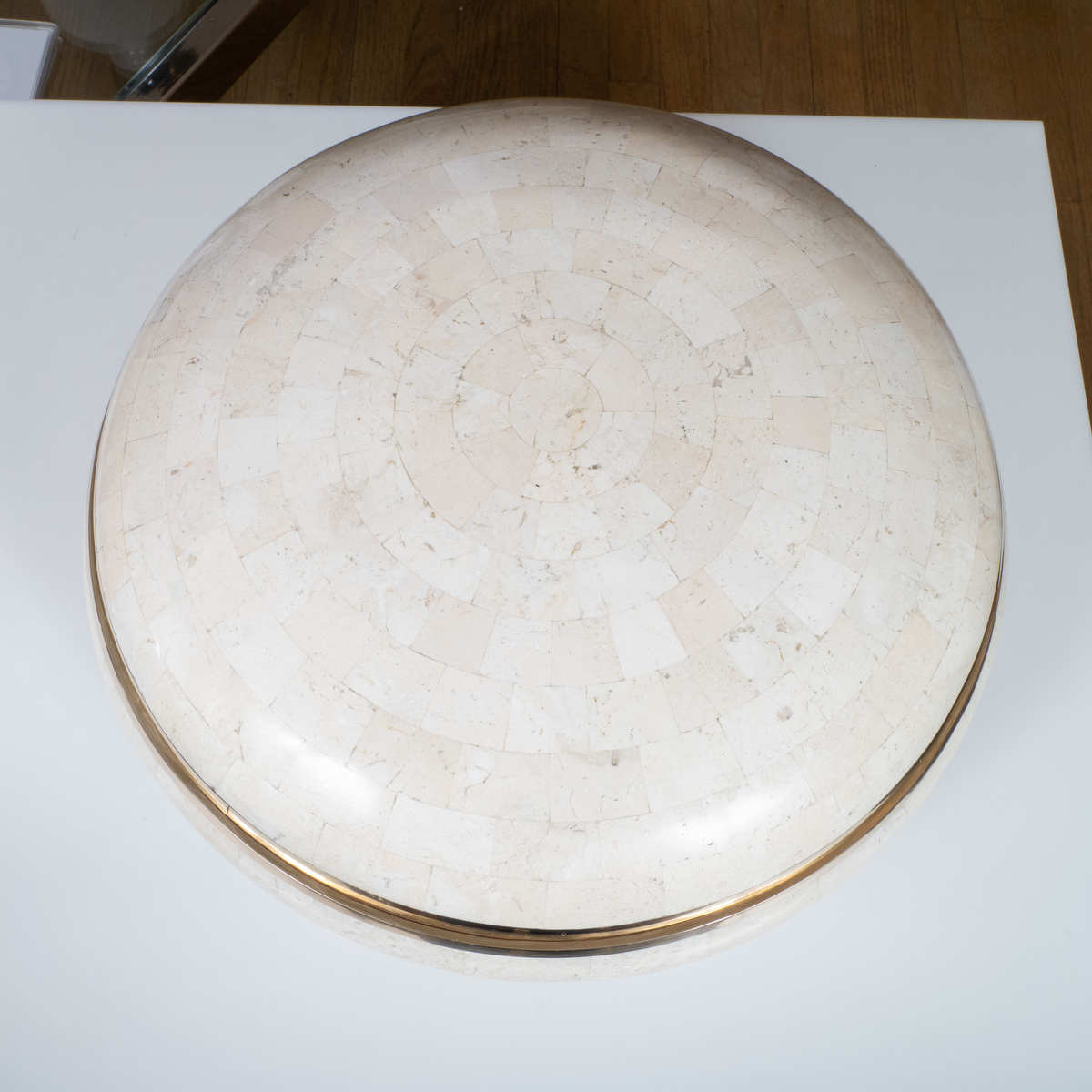 Circular tessellated stone bowl by Karl Springer