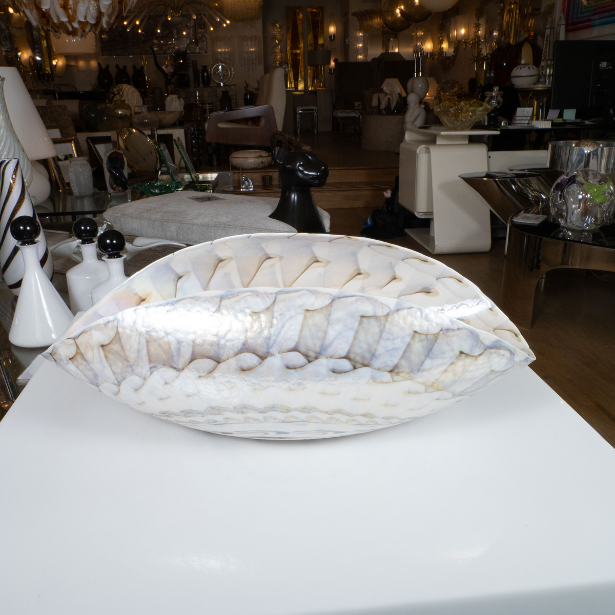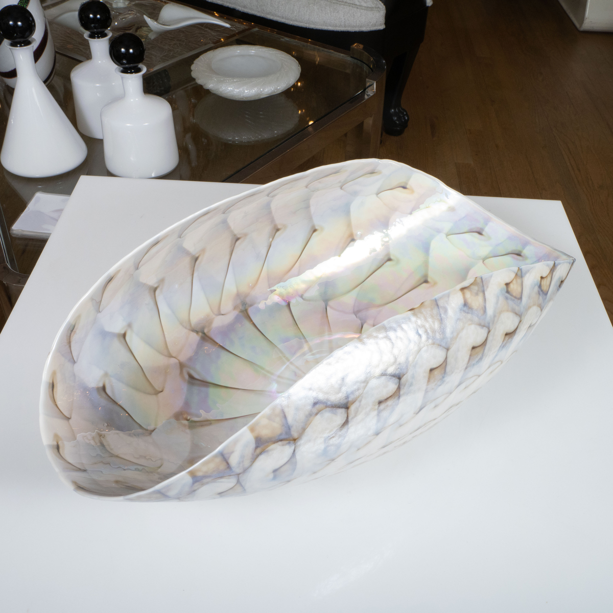 Organic form ivory and opalescent Murano glass bowl