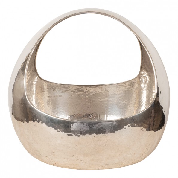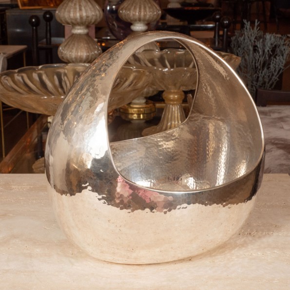 Repoussed silver plated handled bowl/basket