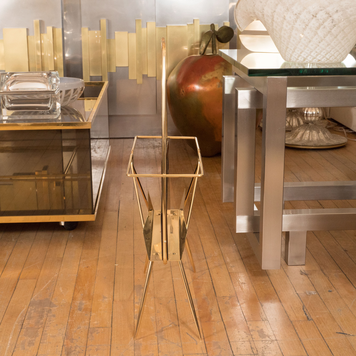Brass and ebonized wood magazine rack