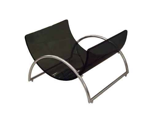 Chrome and smoked glass demilune magazine rack