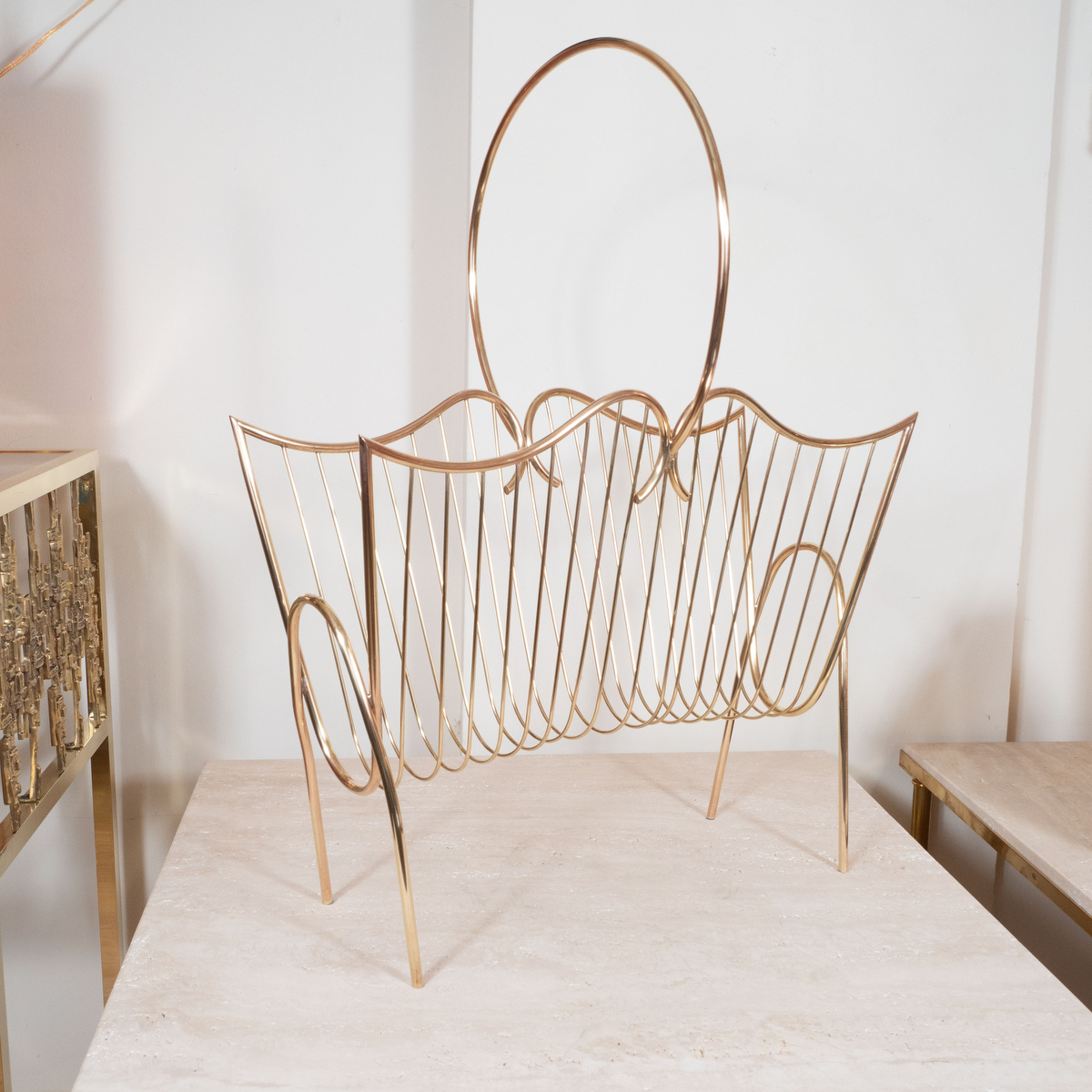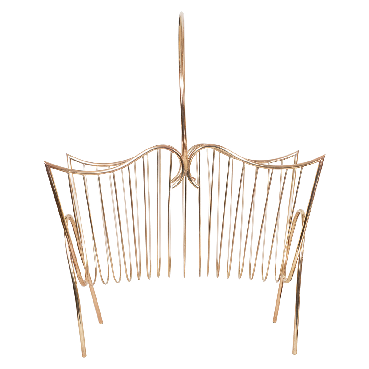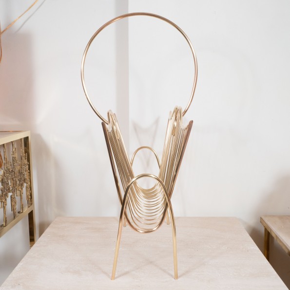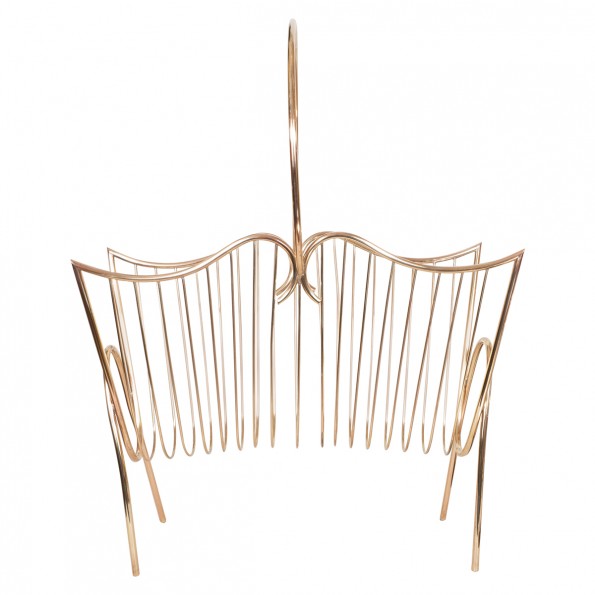 Curvilinear brass wire form magazine rack