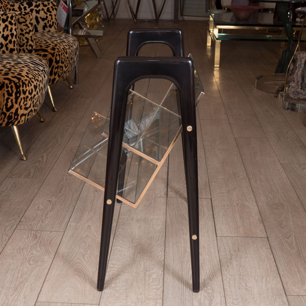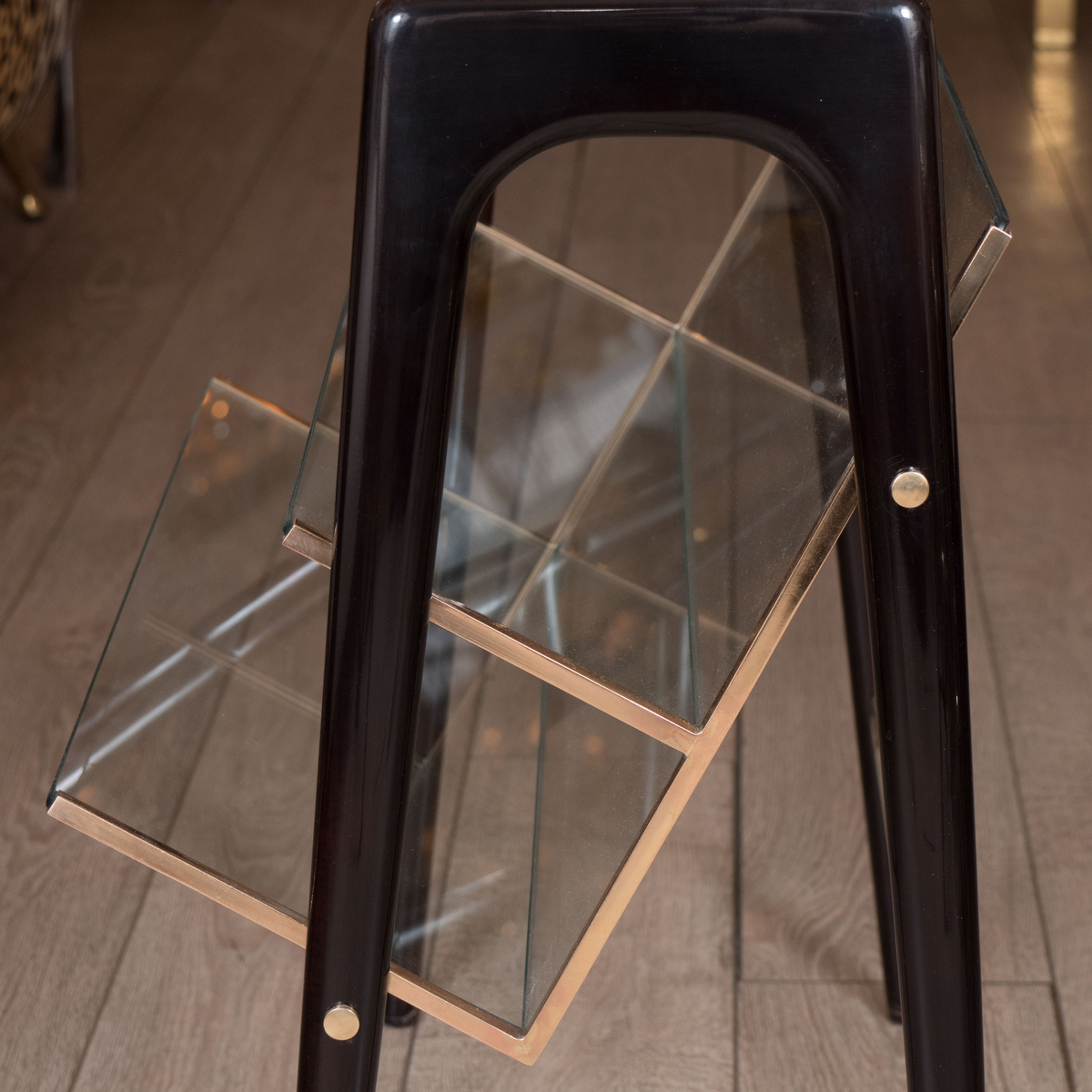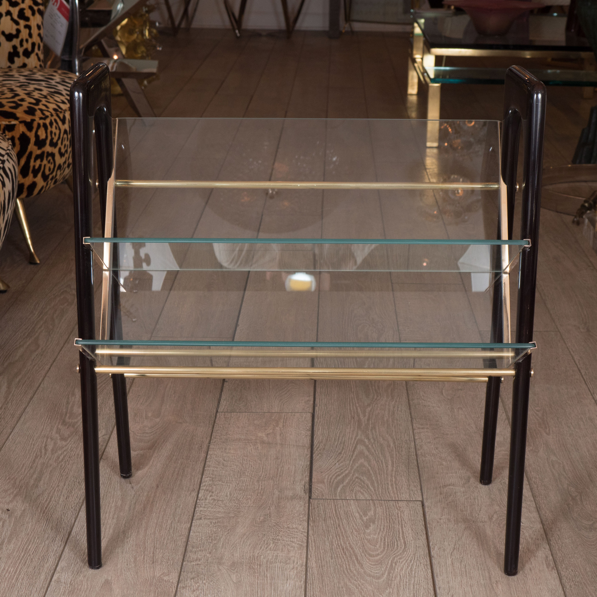Stylized brass magazine rack
