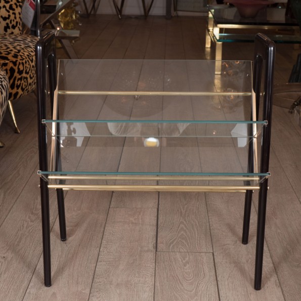 Rectangular Lucite and brass magazine rack