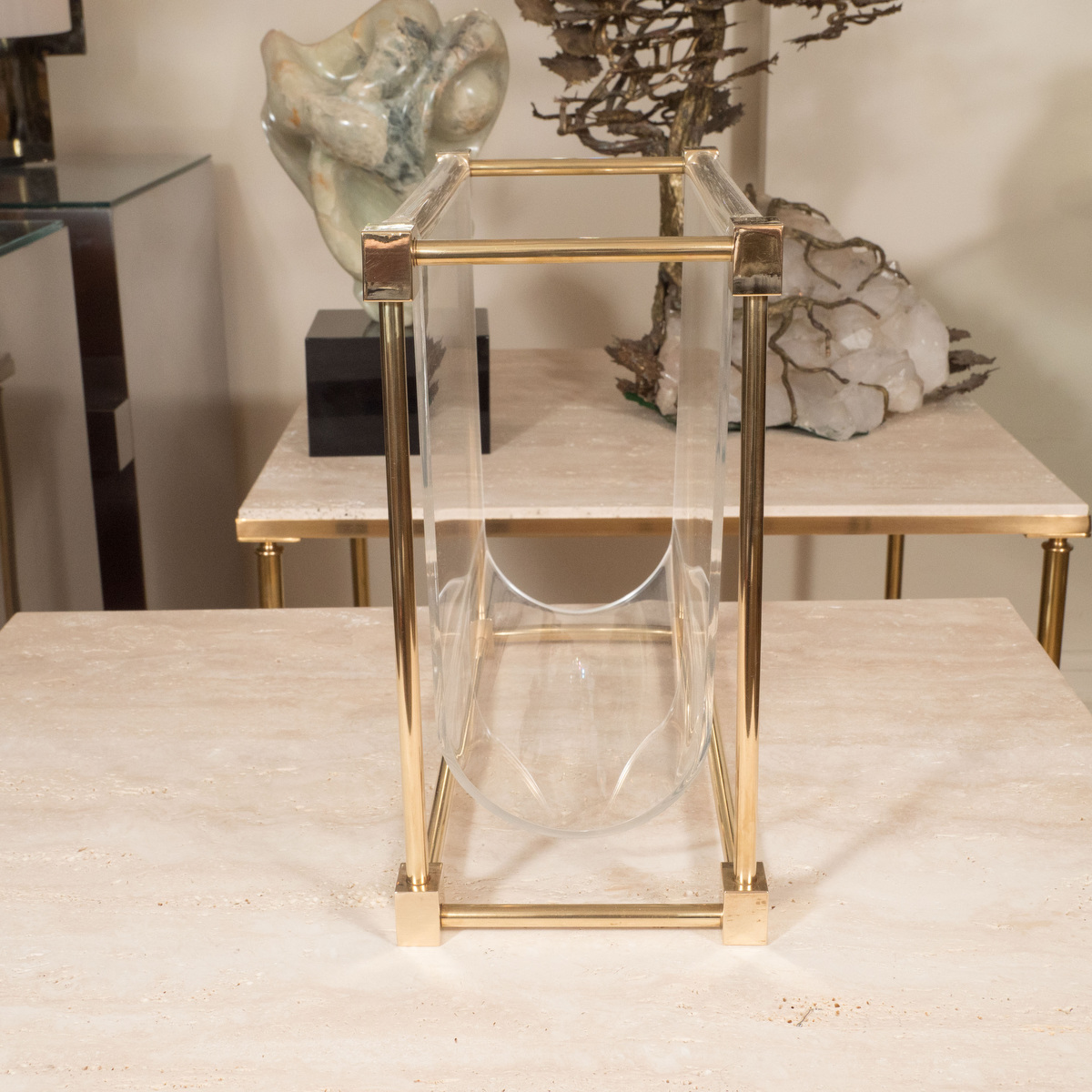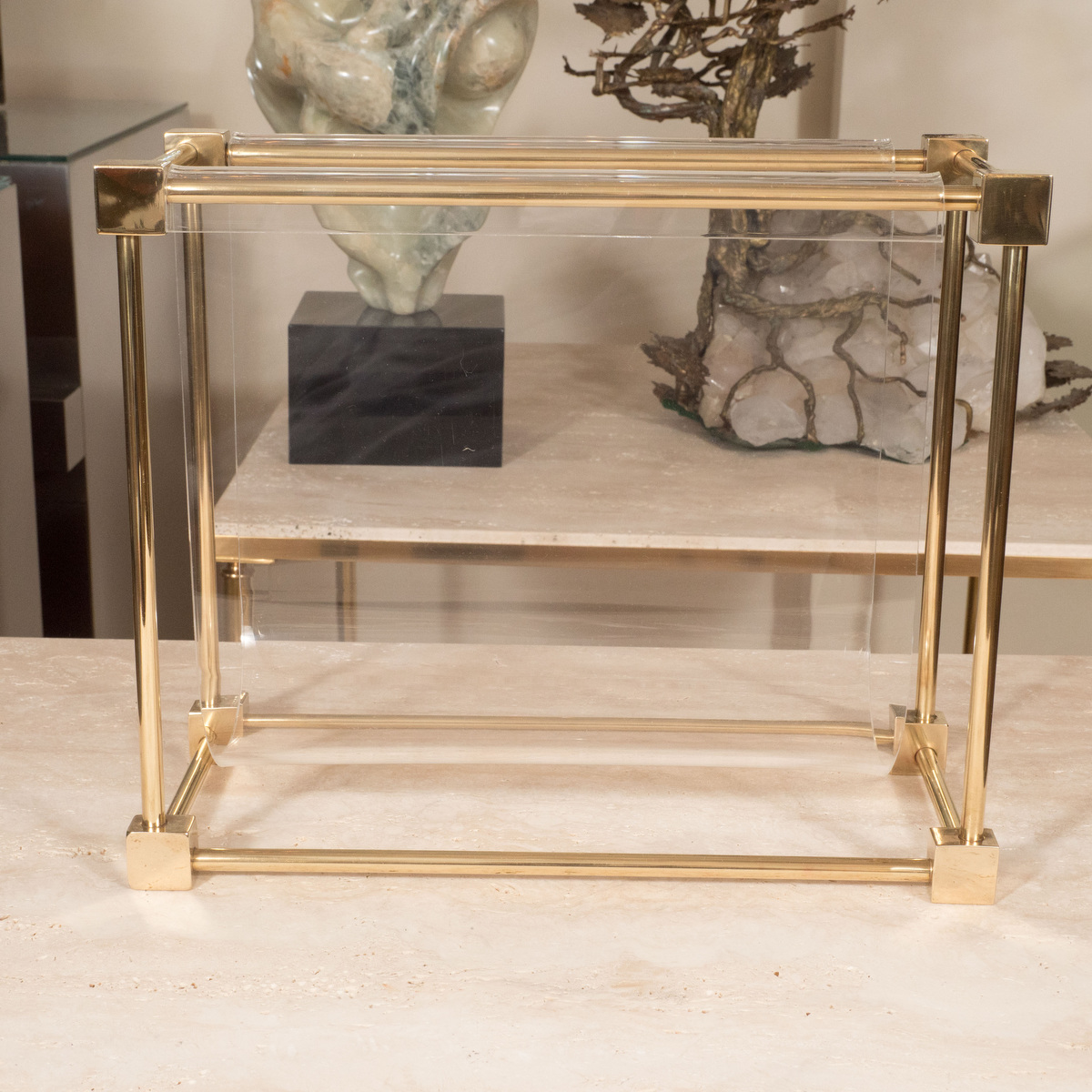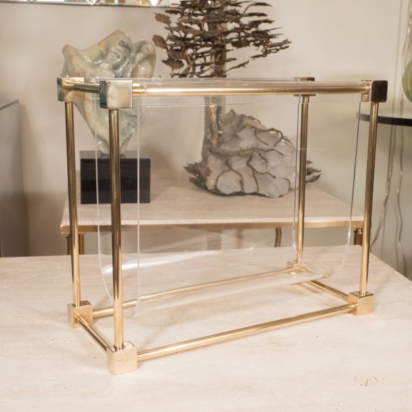 Unusual brass and lucite magazine rack