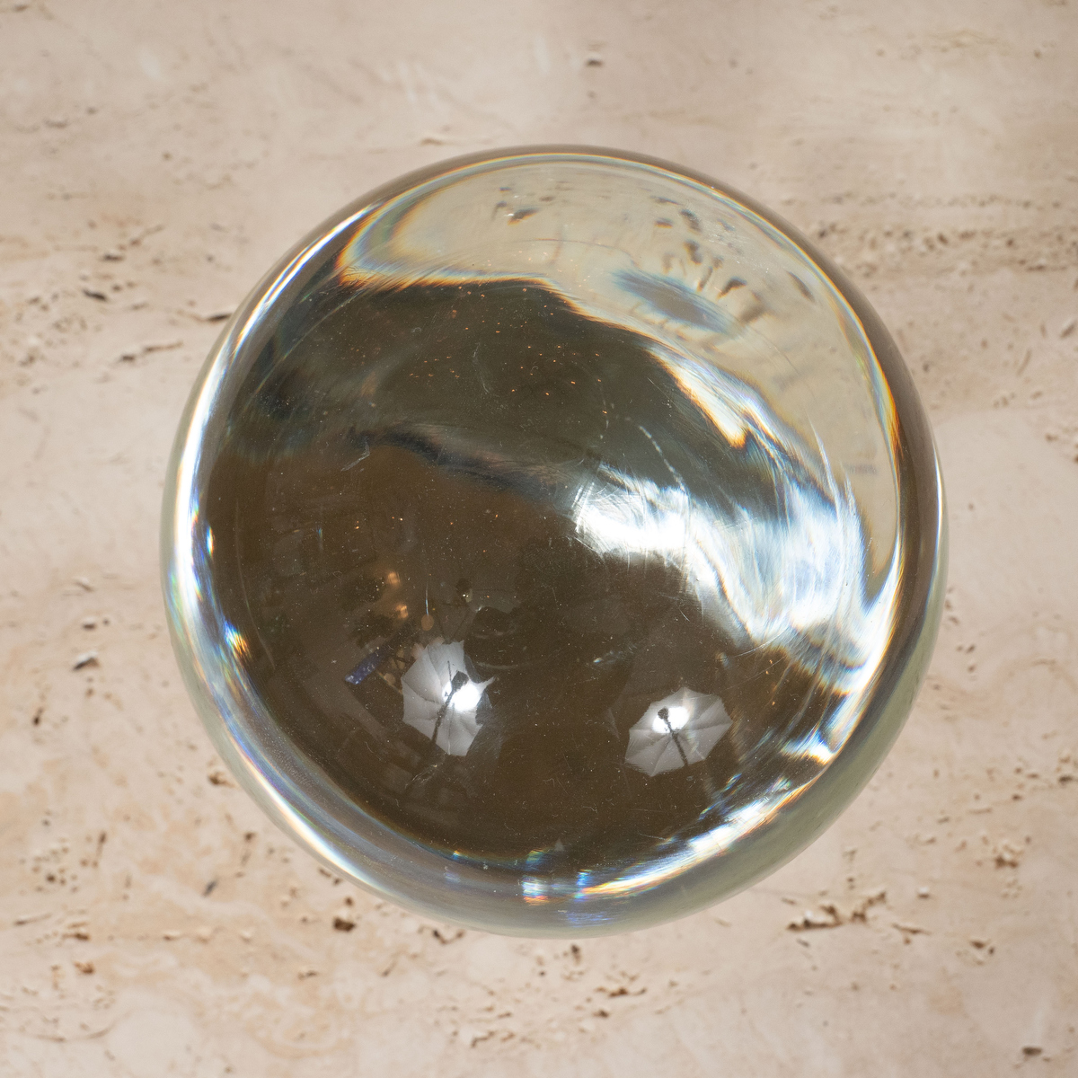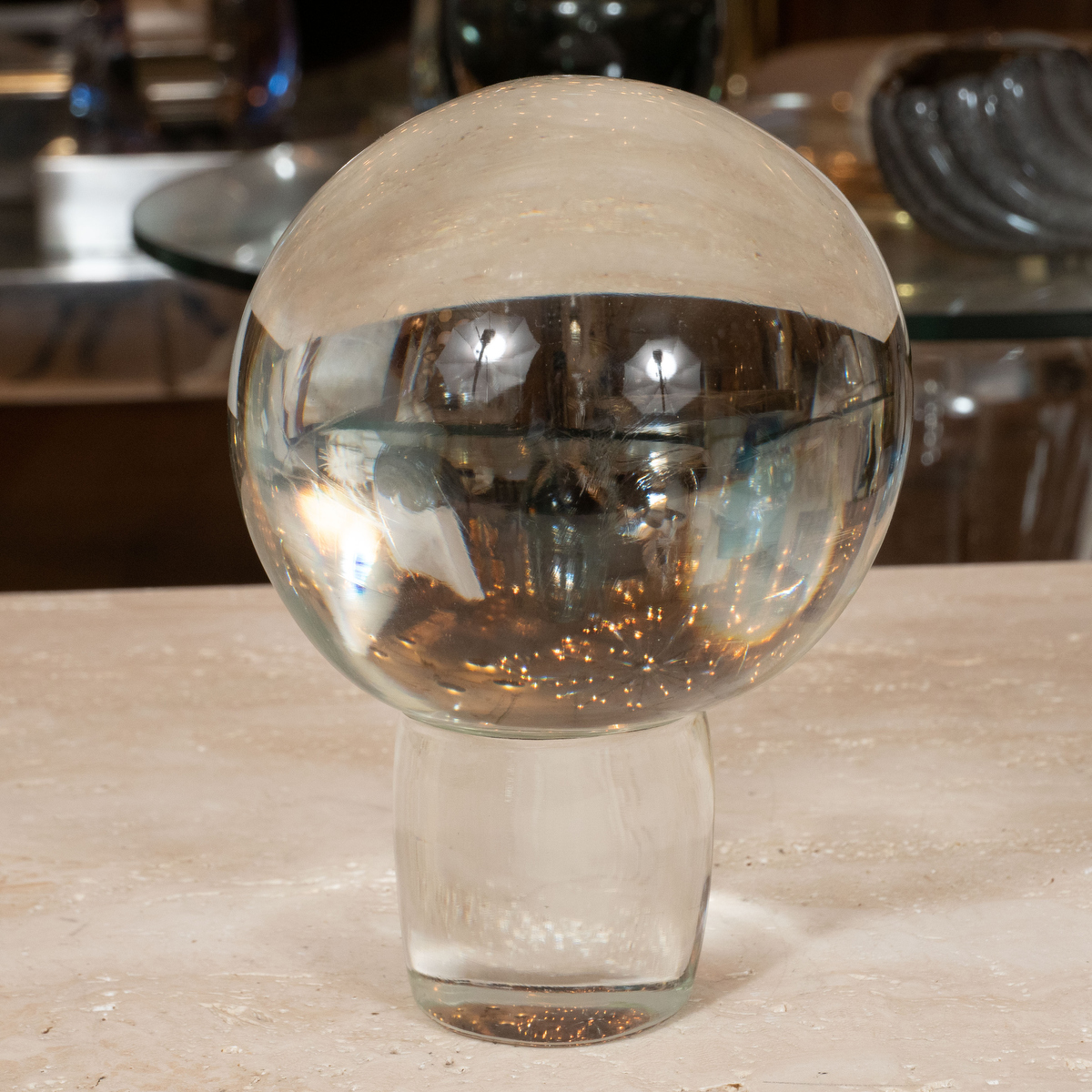 Clear glass orb form sculpture