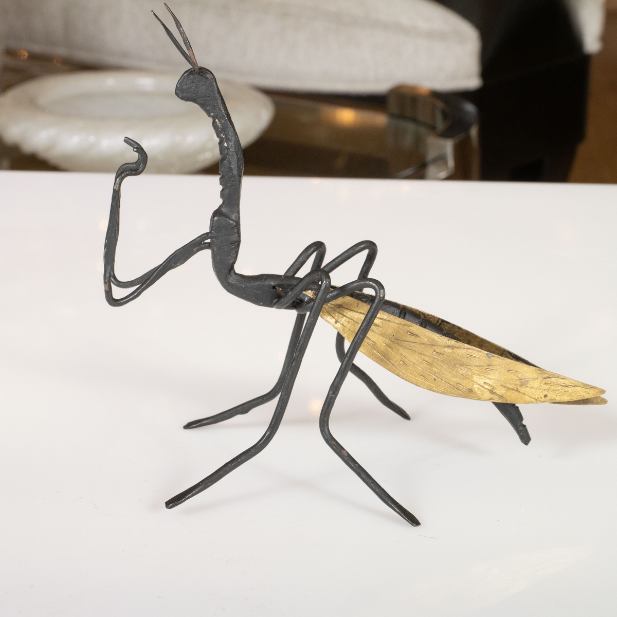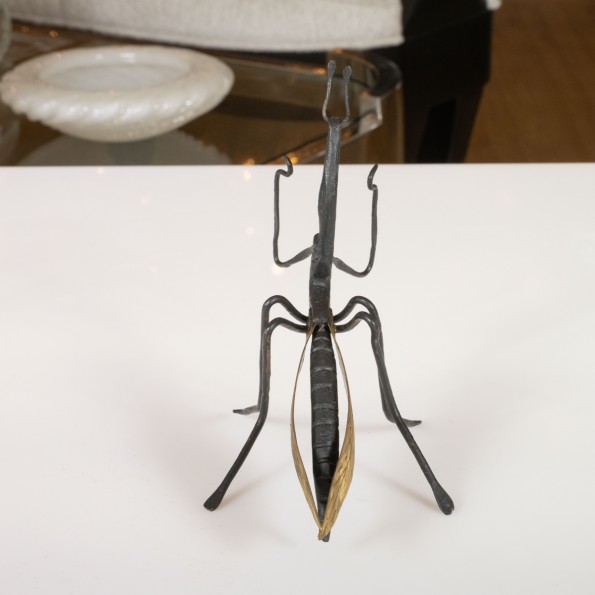 Petite metal and brass grasshopper object