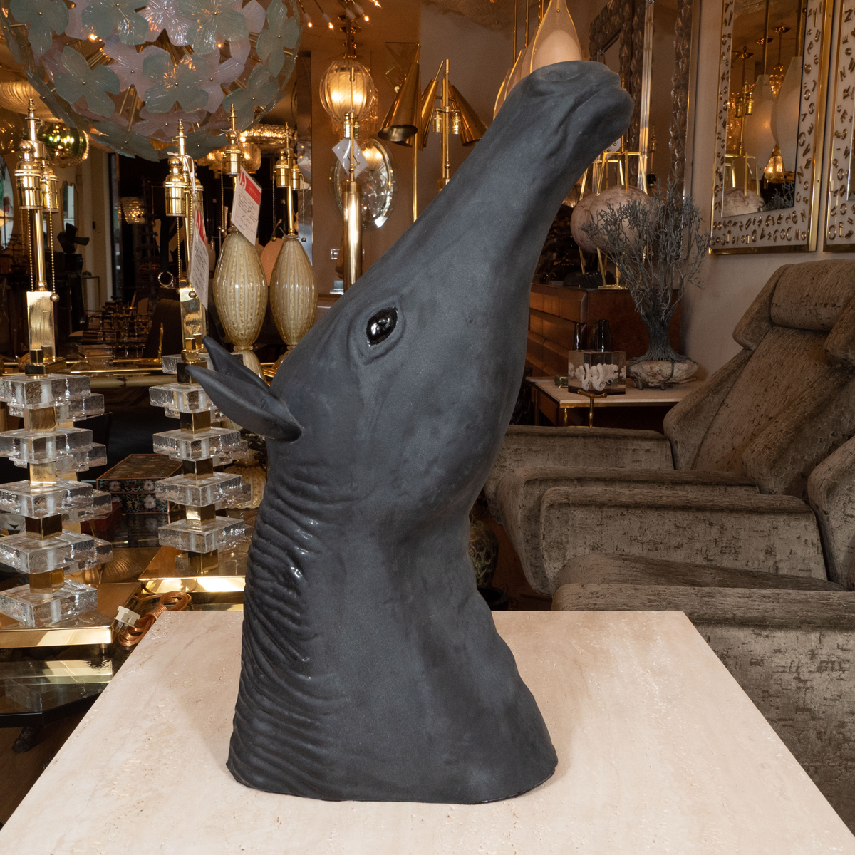 Scavo glass horse head sculpture by Cenedese