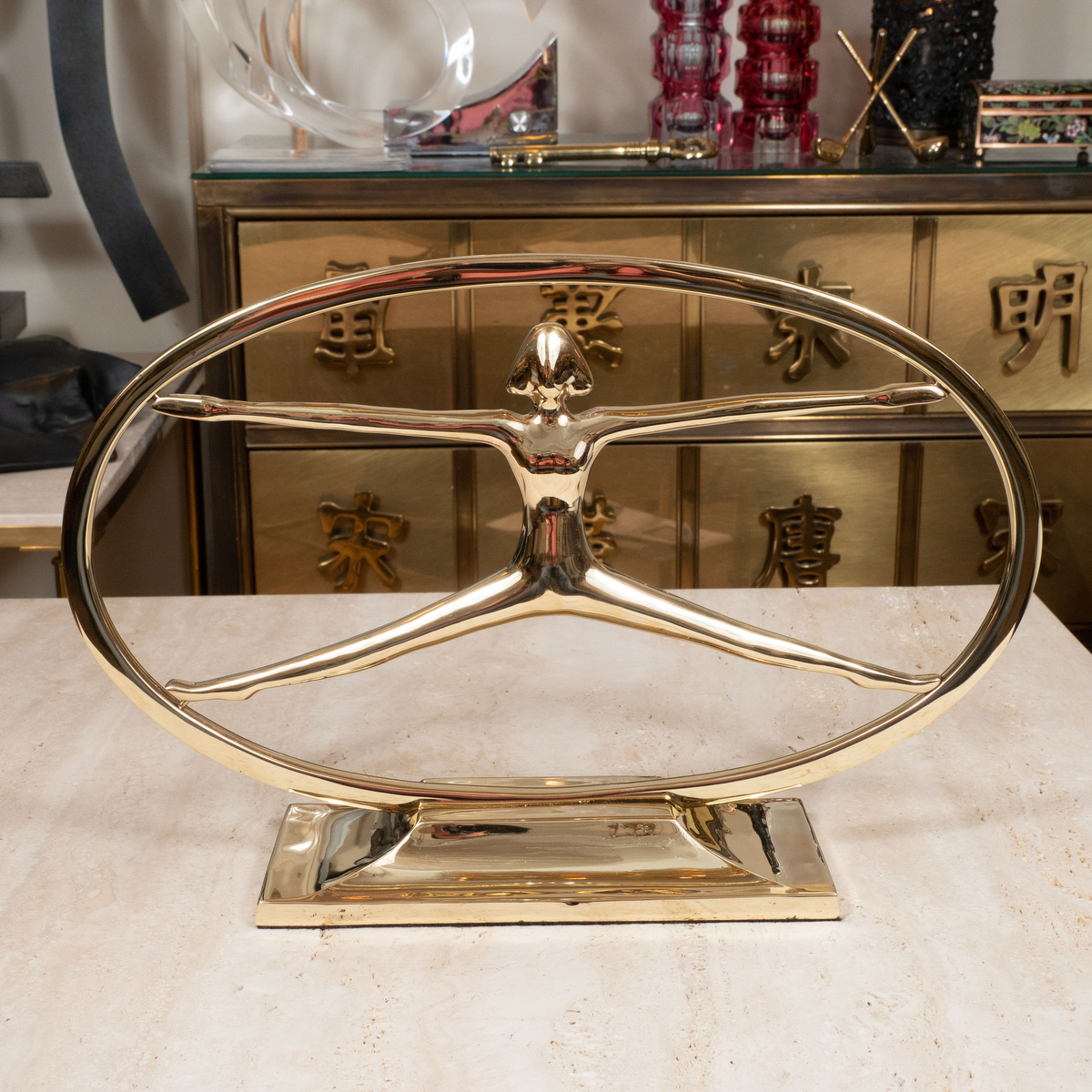 Short brass oval figural sculpture