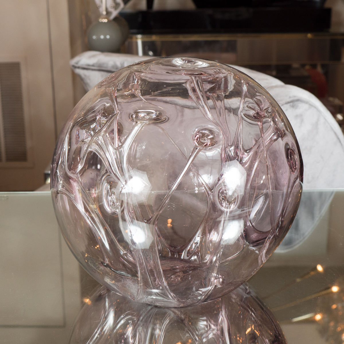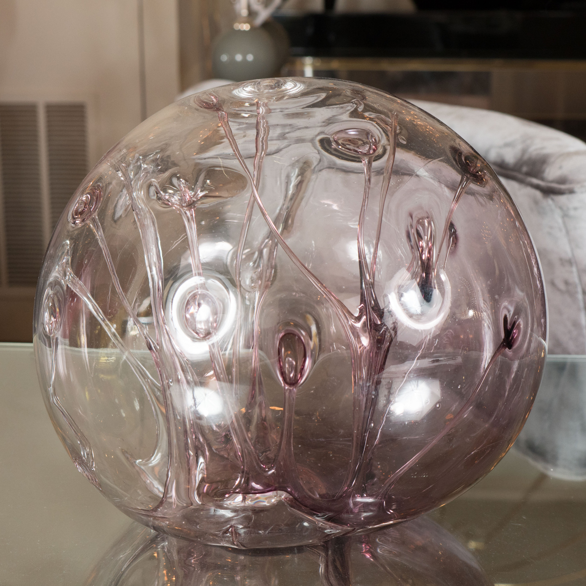 Spherical amethyst glass sculpture by Peter Bramhall