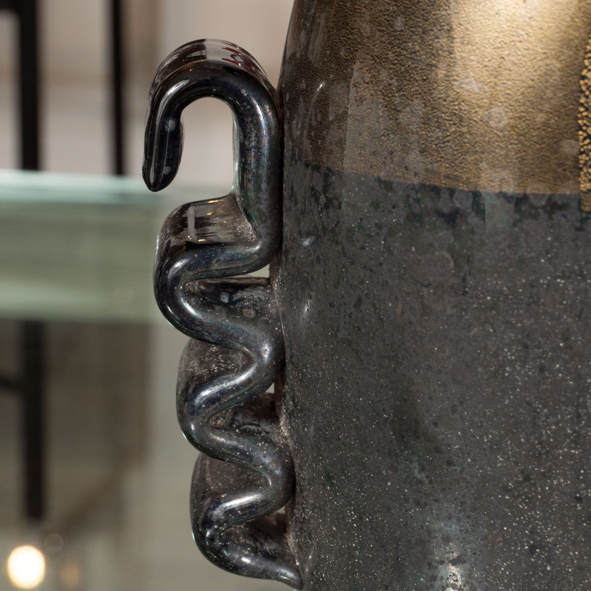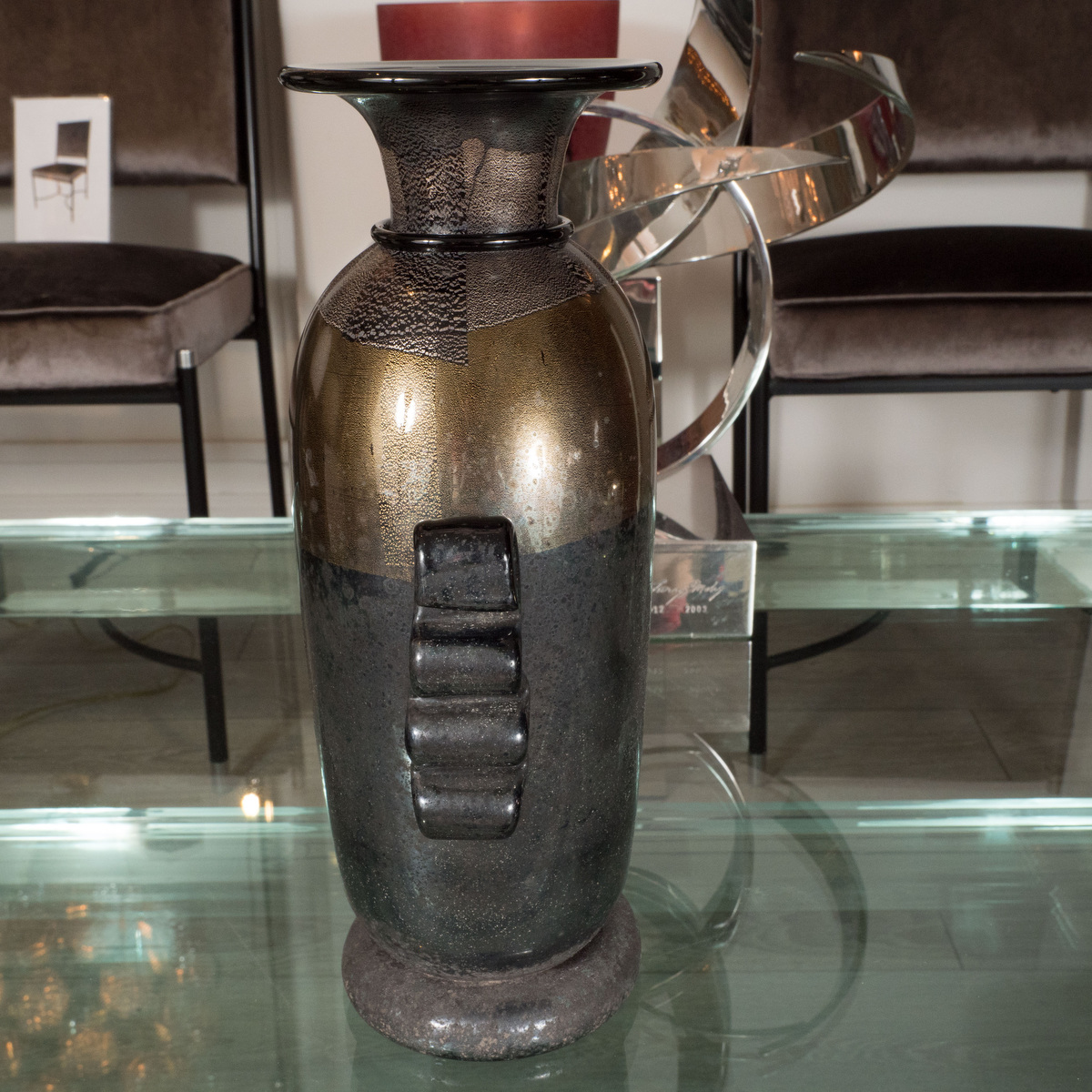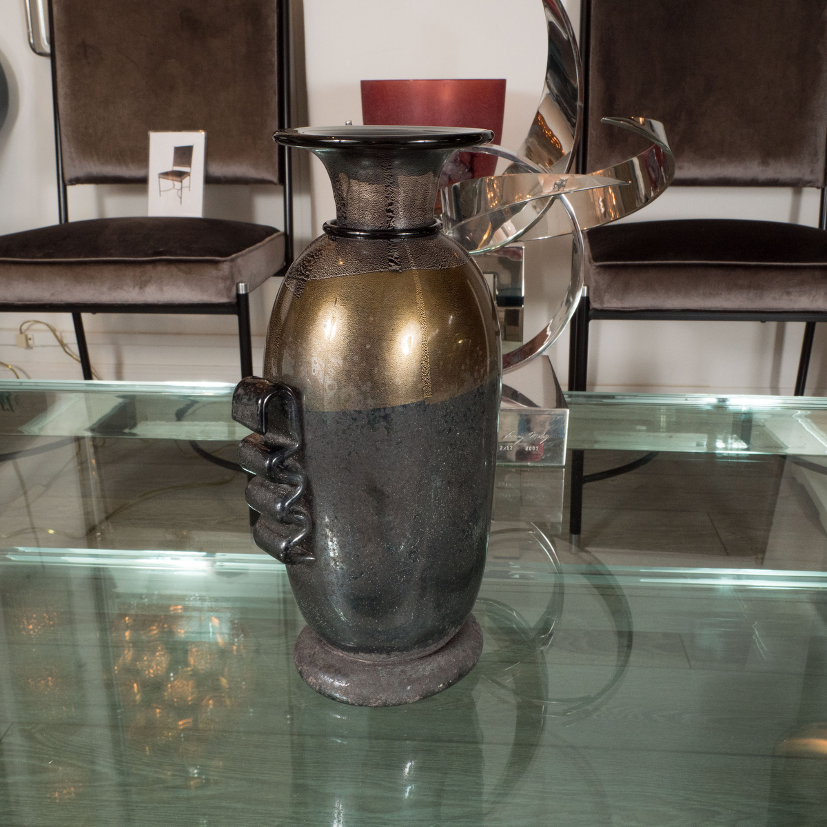 Black and gold Murano glass amphora style vase by Signoretto