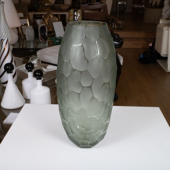 Dark grey battuto vase by Alberto Dona