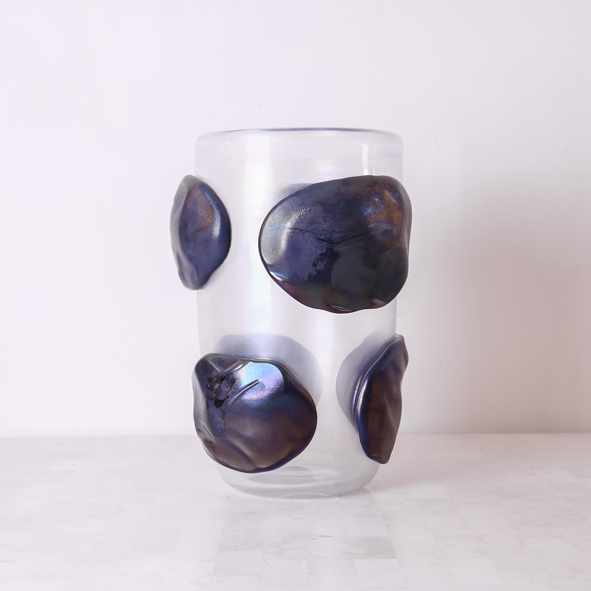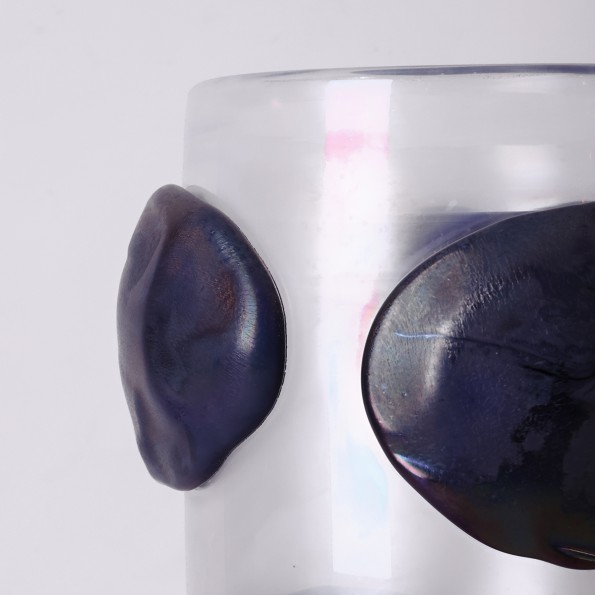 Iridescent Murano glass vase with applied elements