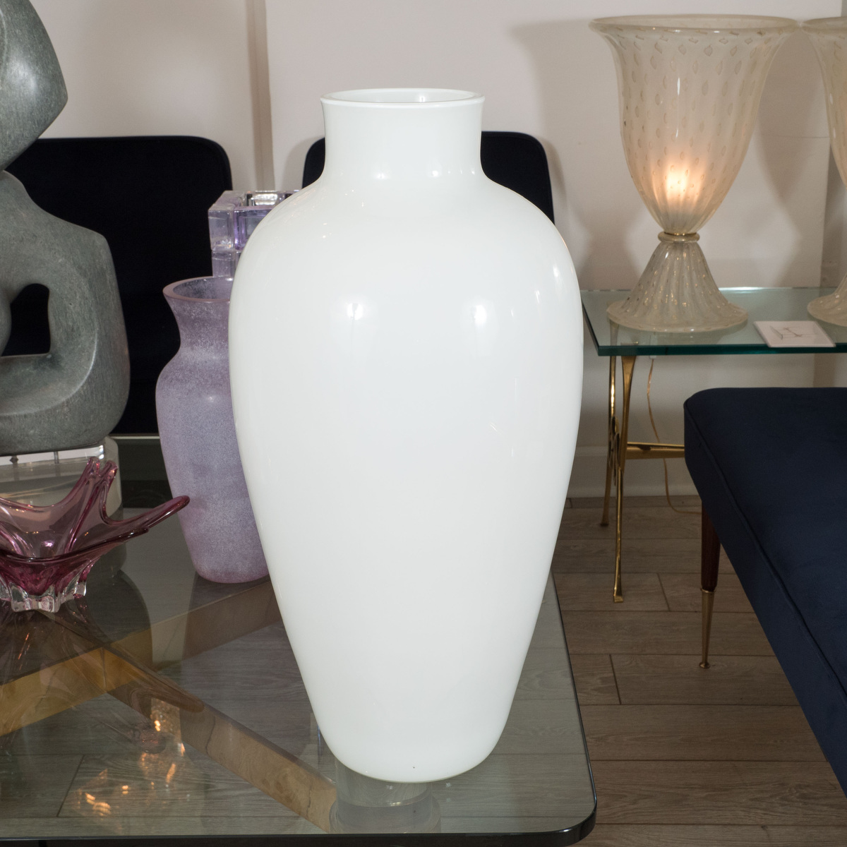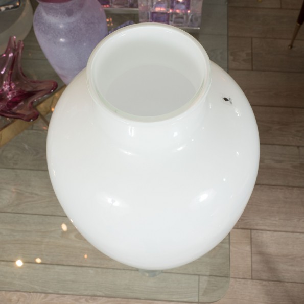 Murano glass vase with feathery blue design