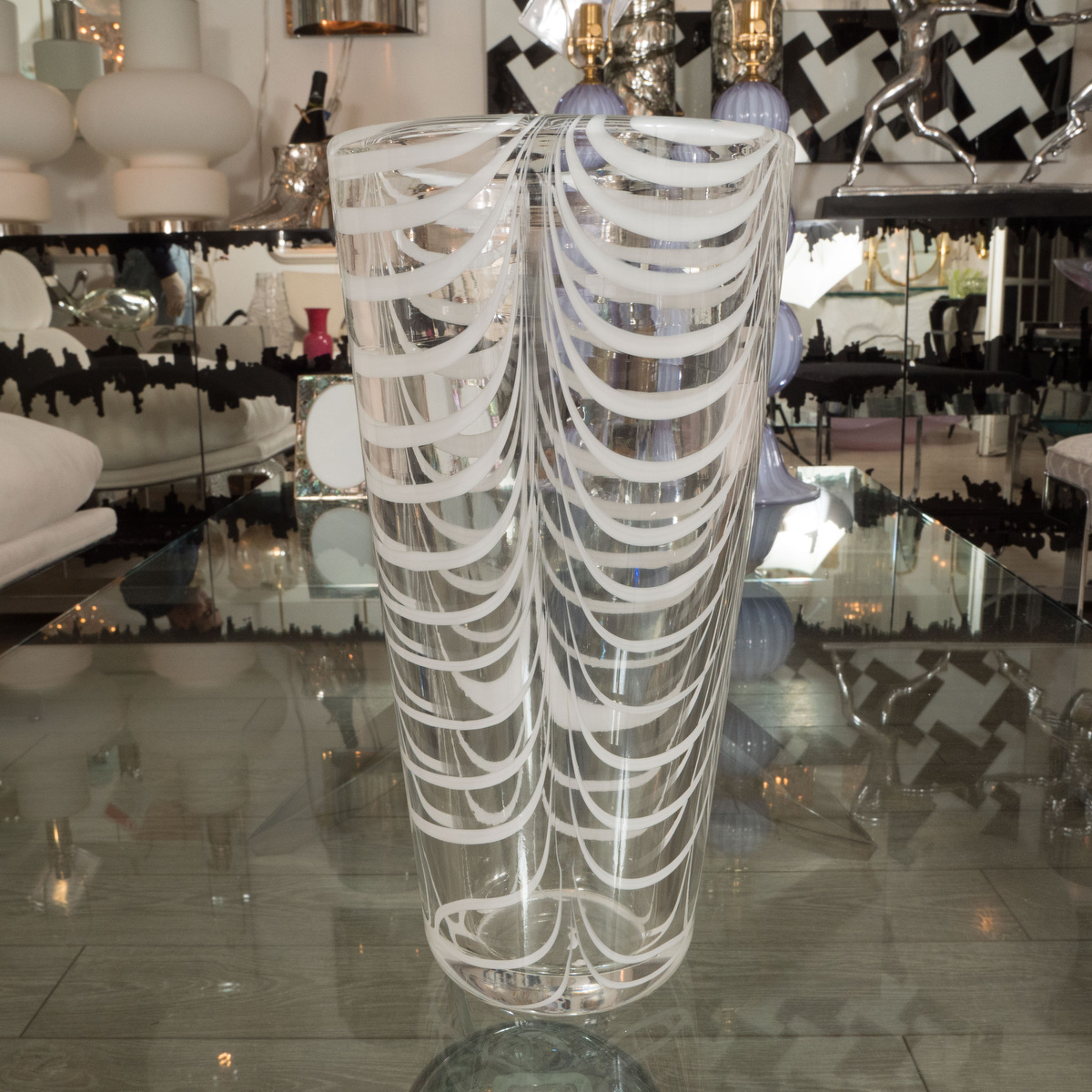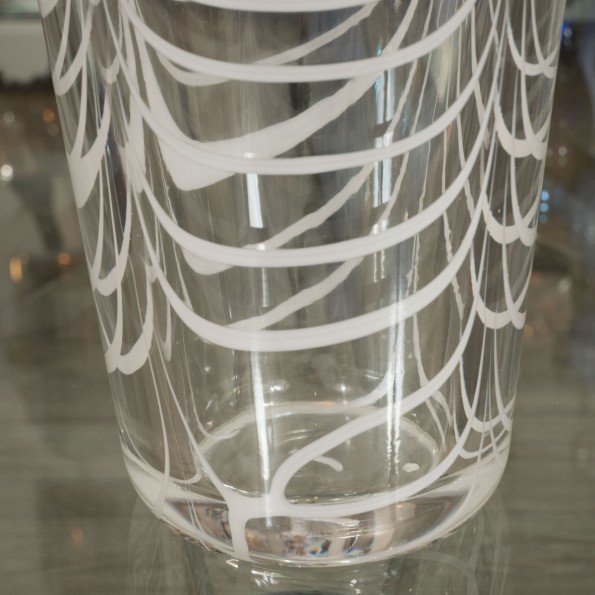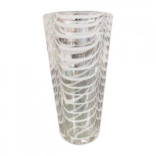 Ovoid green and white Murano glass vase