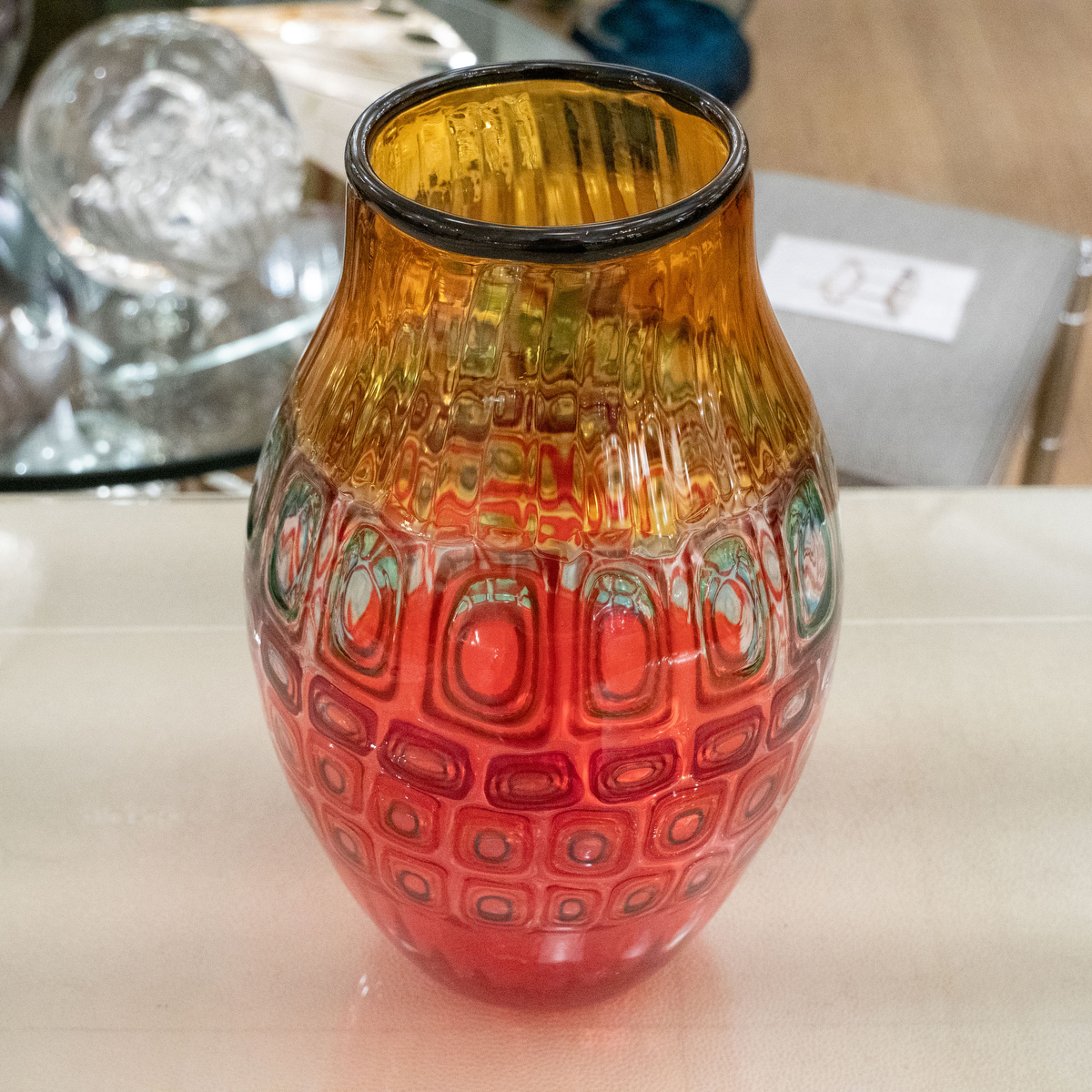 Orange and yellow murano glass vase