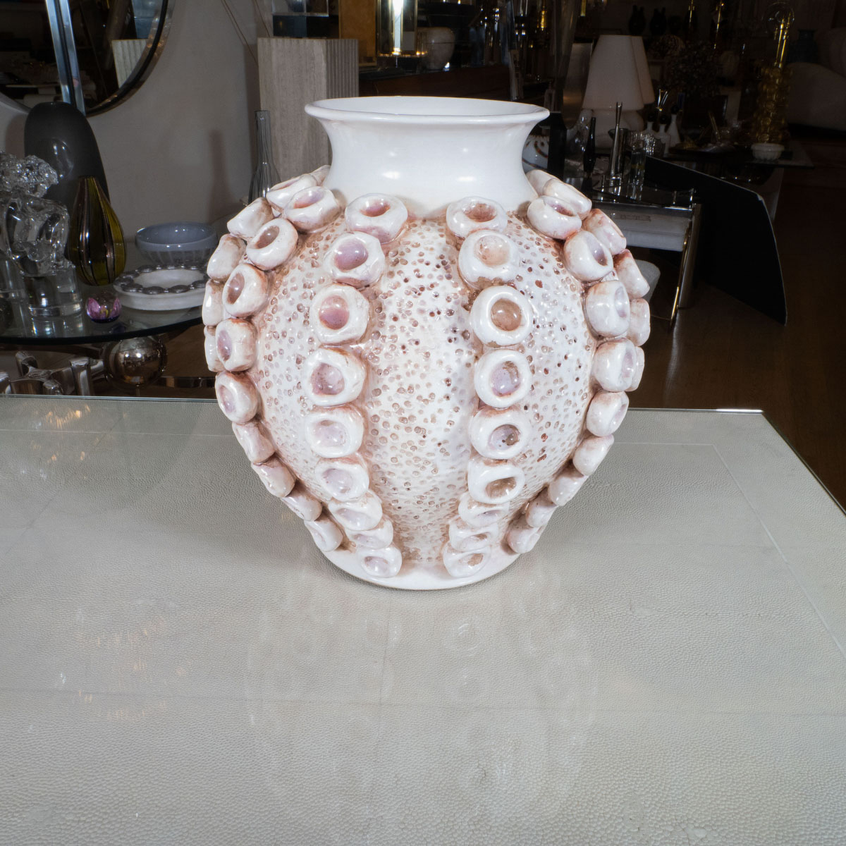 Pink and ivory pottery vase