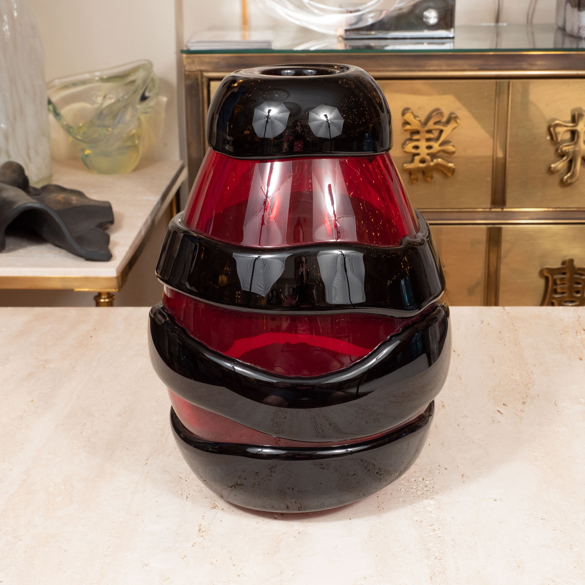 Red Murano glass vase by Paolo Crepax for Vistosi