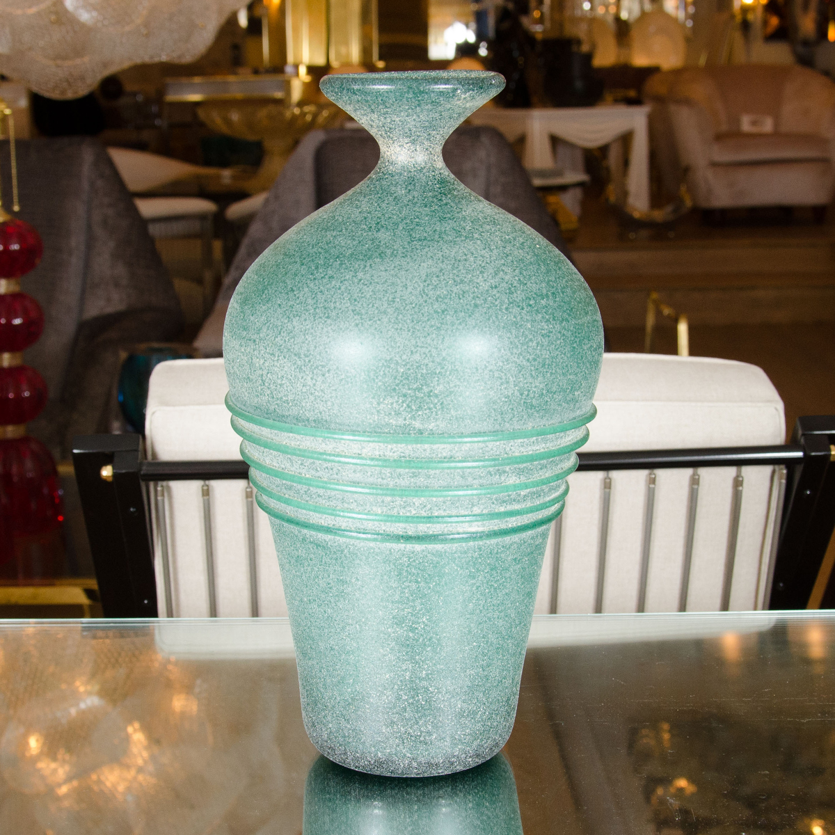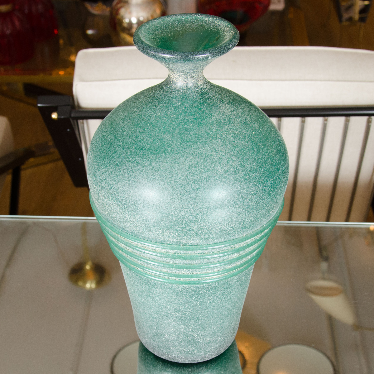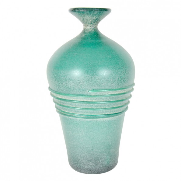 Tall green scavo glass vase by Cenedese