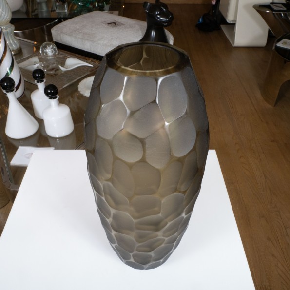 Tall grey battuto form Murano glass vase by Alberto Dona