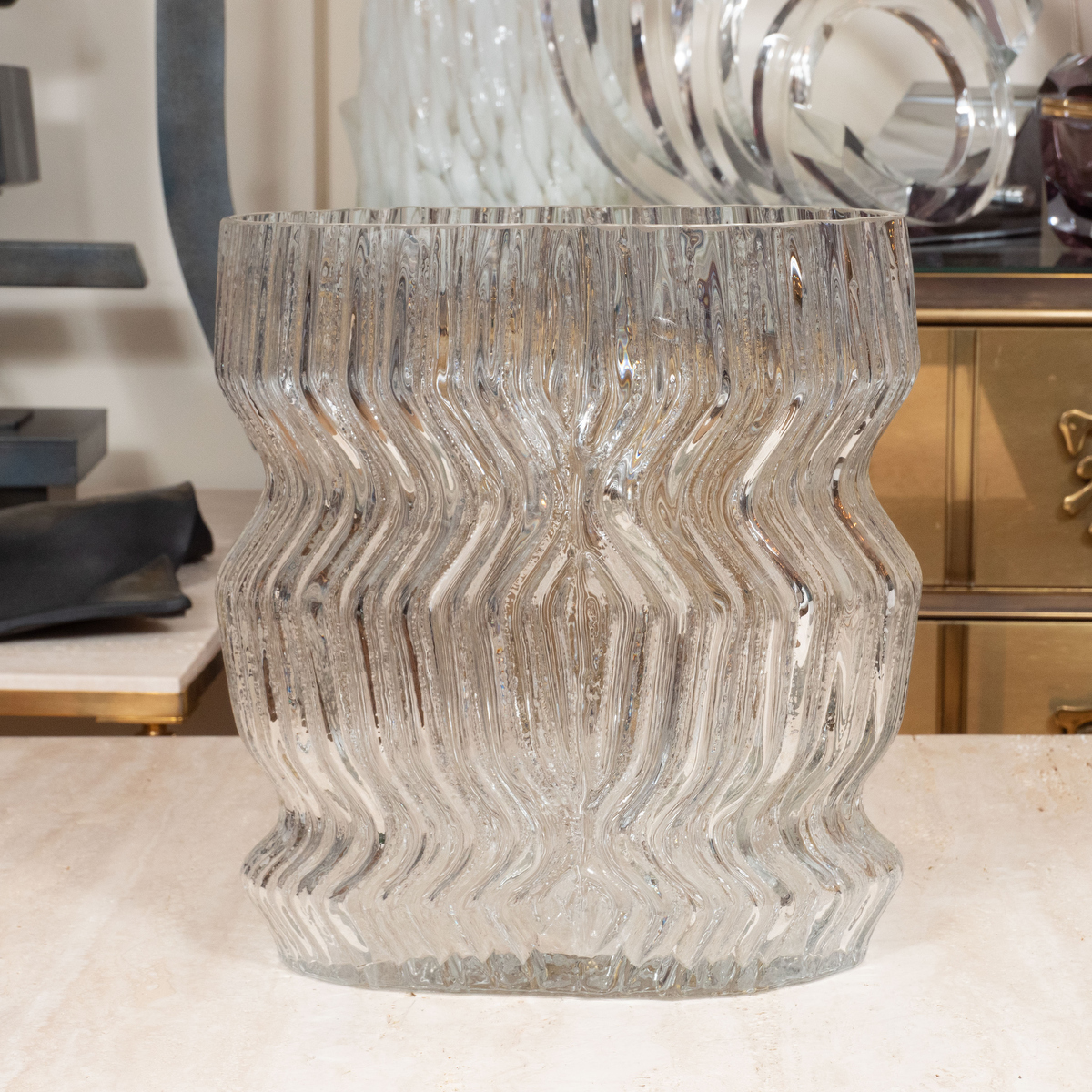 Textured clear glass vase