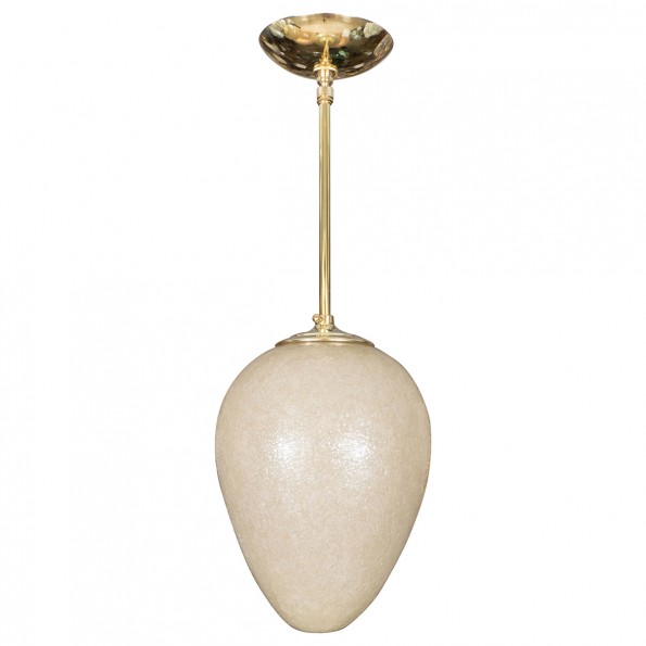 Brass ceiling fixture with ovoid pale gold shade by Seguso