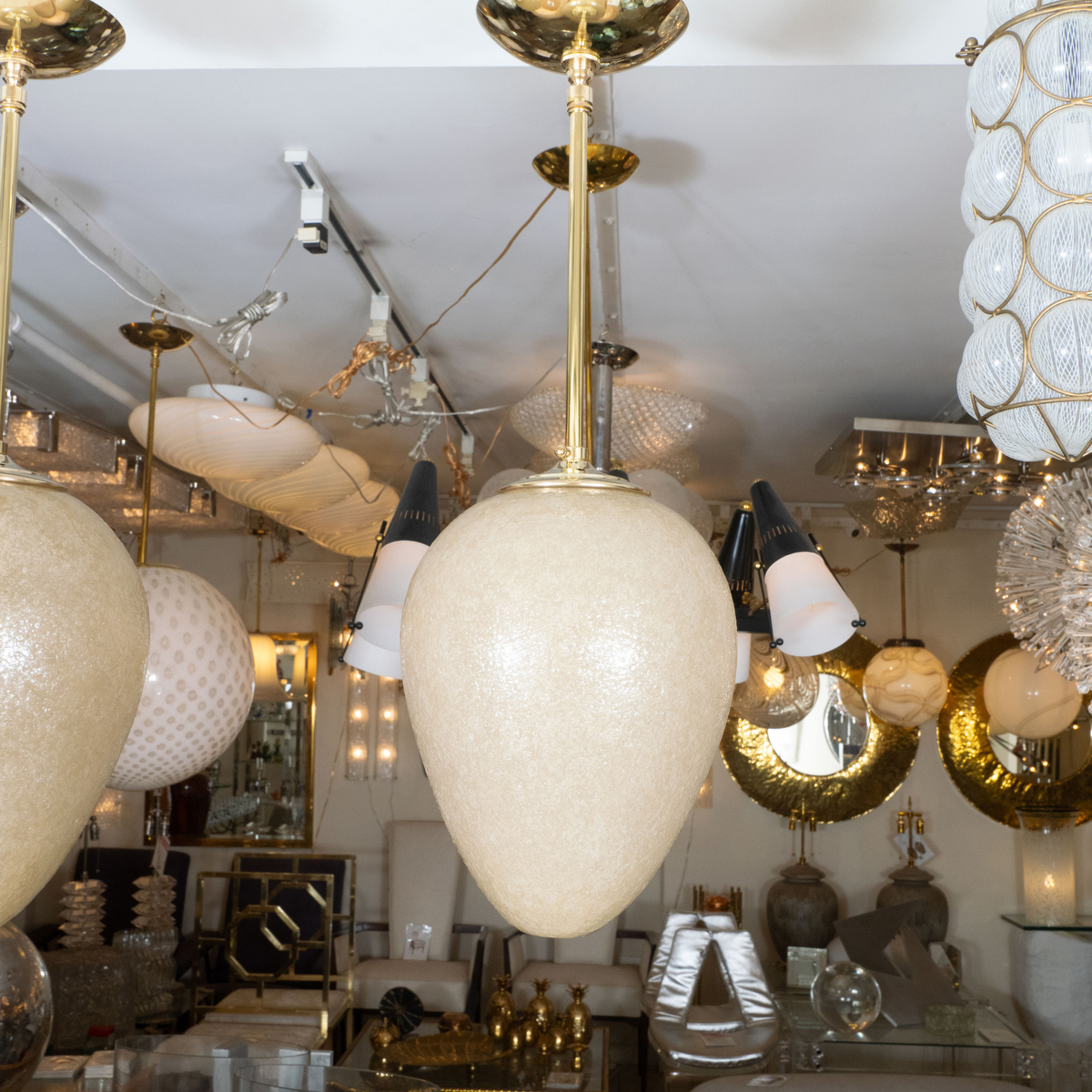 Brass ceiling fixture with ovoid pale gold shade by Seguso