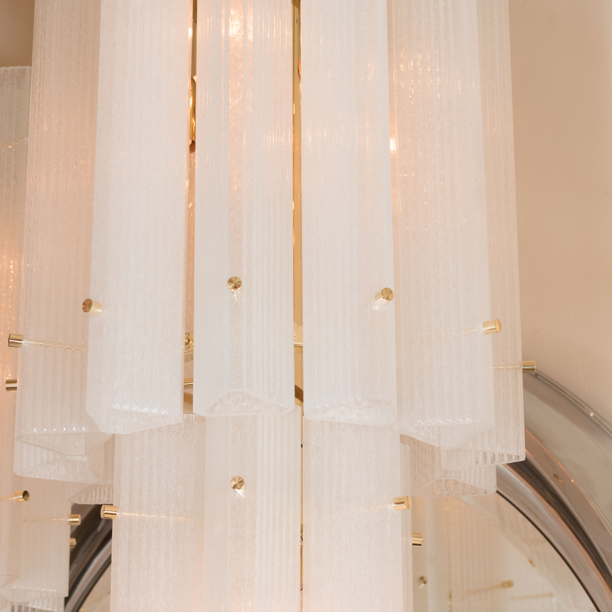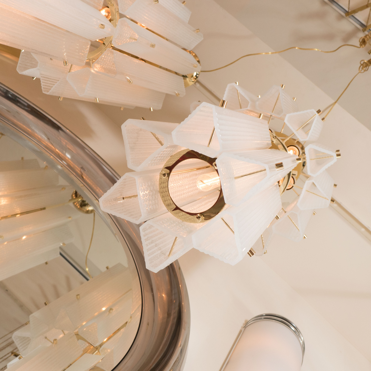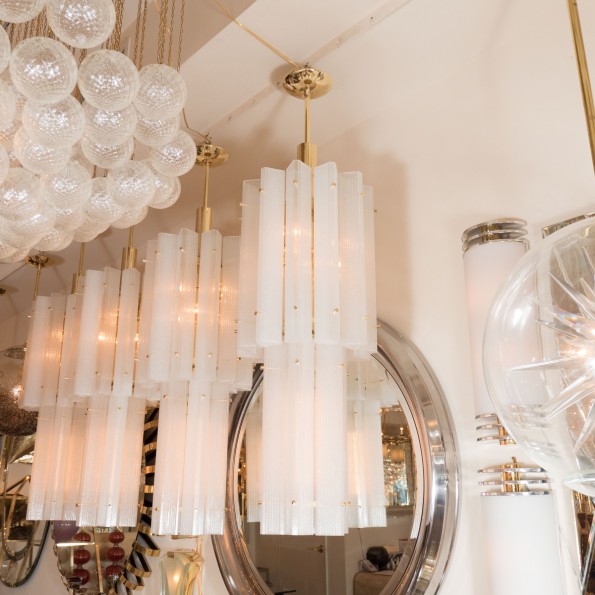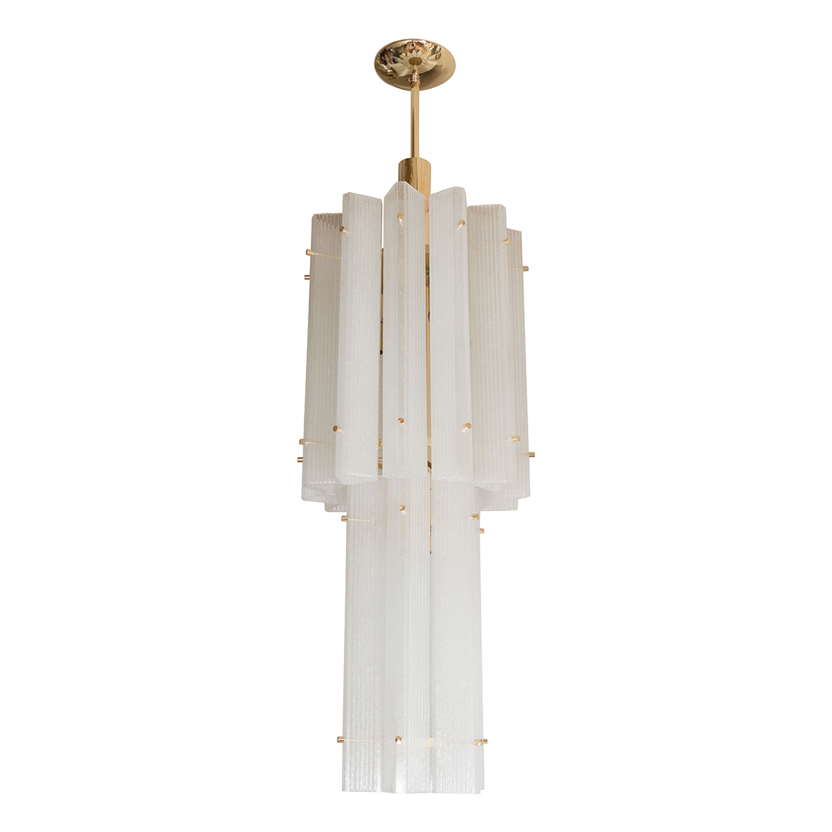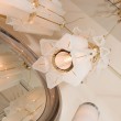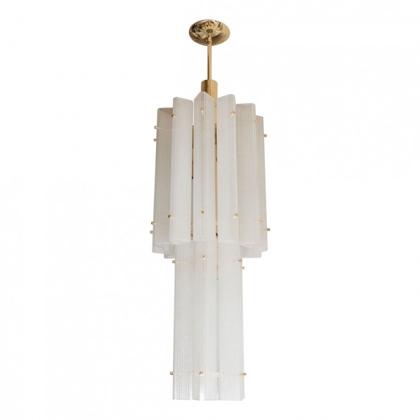 Brass pendant chandelier with frosted glass shades