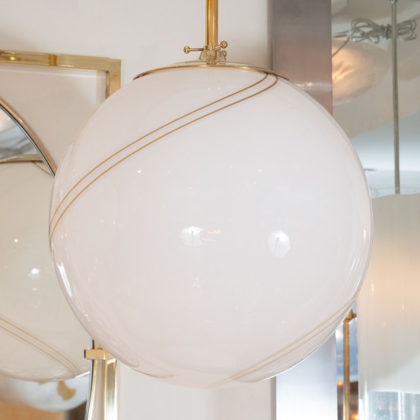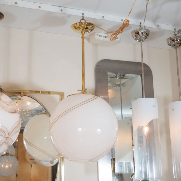 Brass pendant with opaque white shade