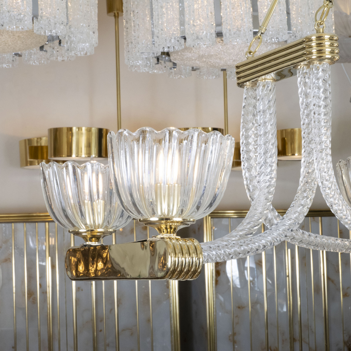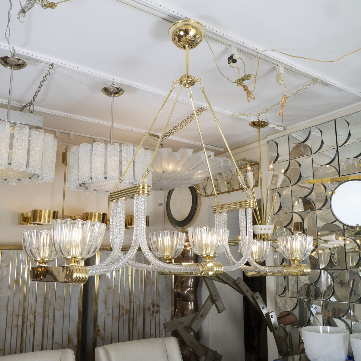 Linear Murano glass rope chandelier by Barovier