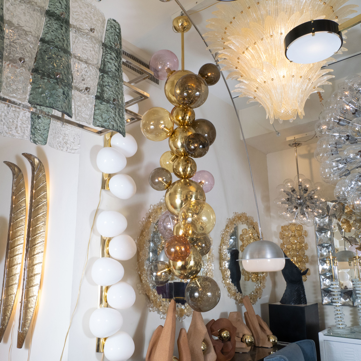 Long vertical brass chandelier