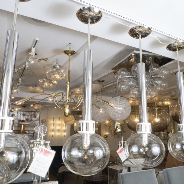 Long vertical polished nickel ceiling fixture by Vistosi