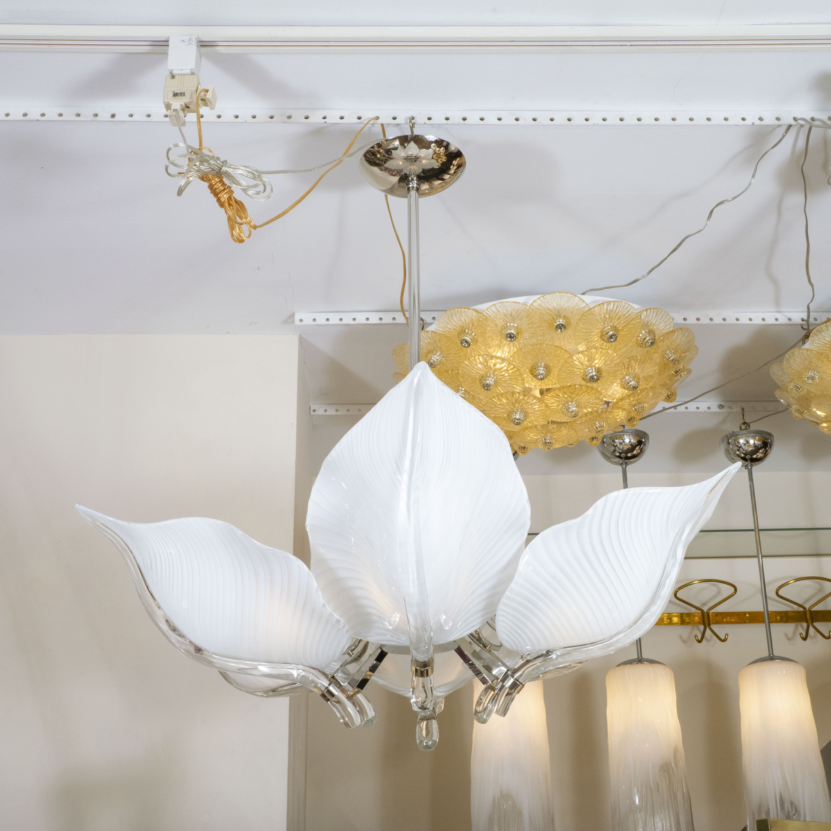 Polished nickel leaf form ceiling fixture
