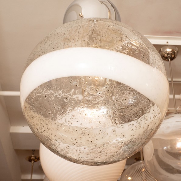Spherical lattimo wide stripe glass pendant fixture
