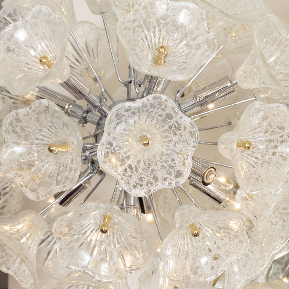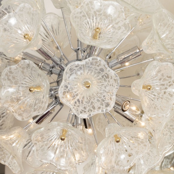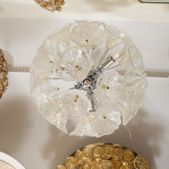 Spherical pendant composed of clear glass flowers