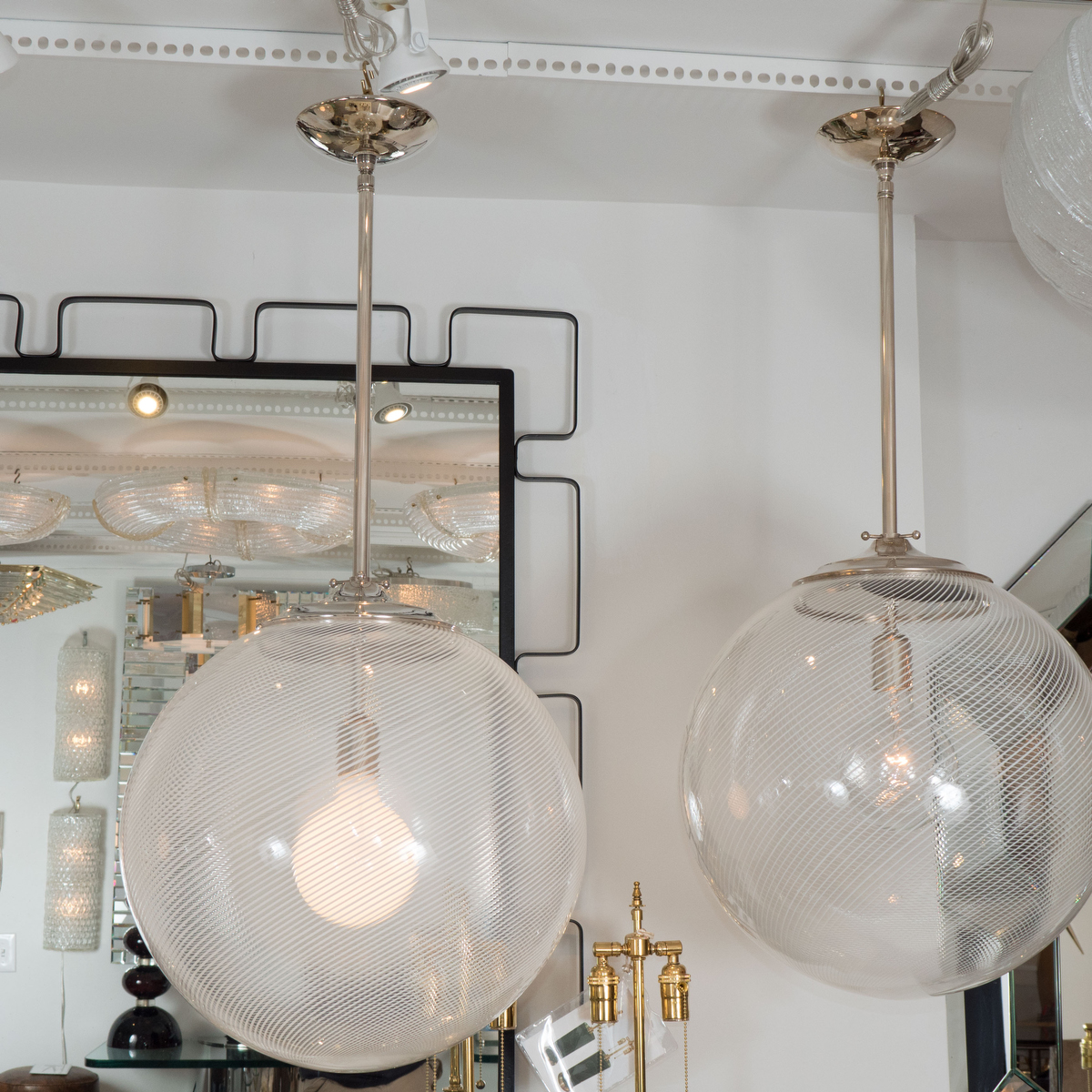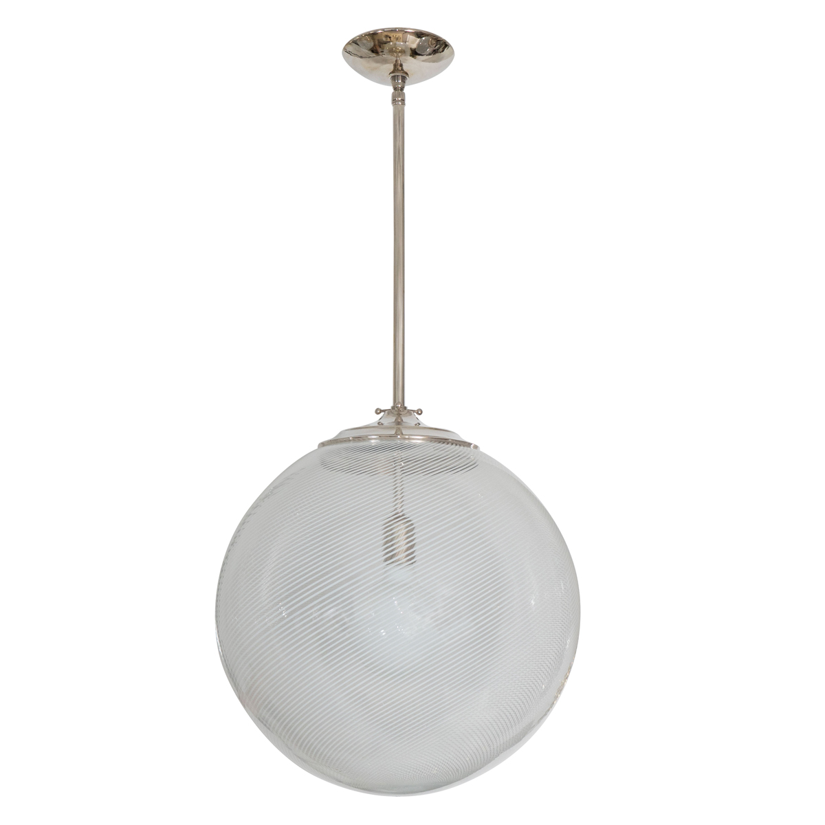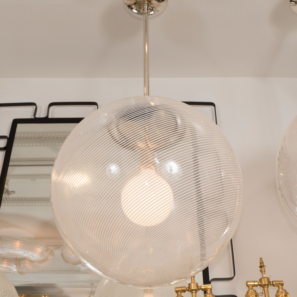 Spherical swirled lattimo glass pendant ceiling fixture by Venini