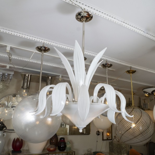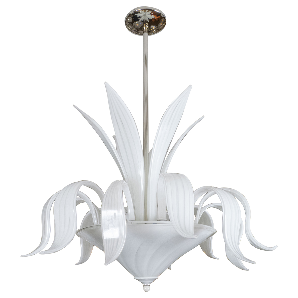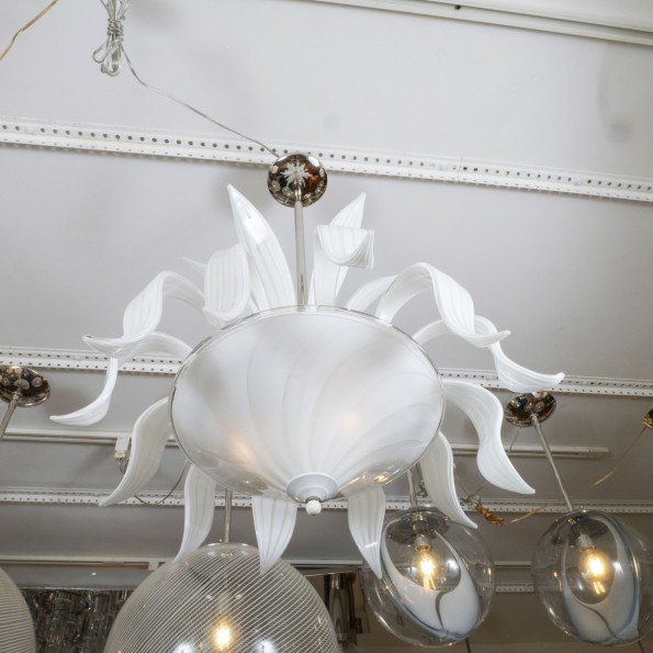 Star form brushed aluminum flush mount with tubular elements.