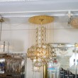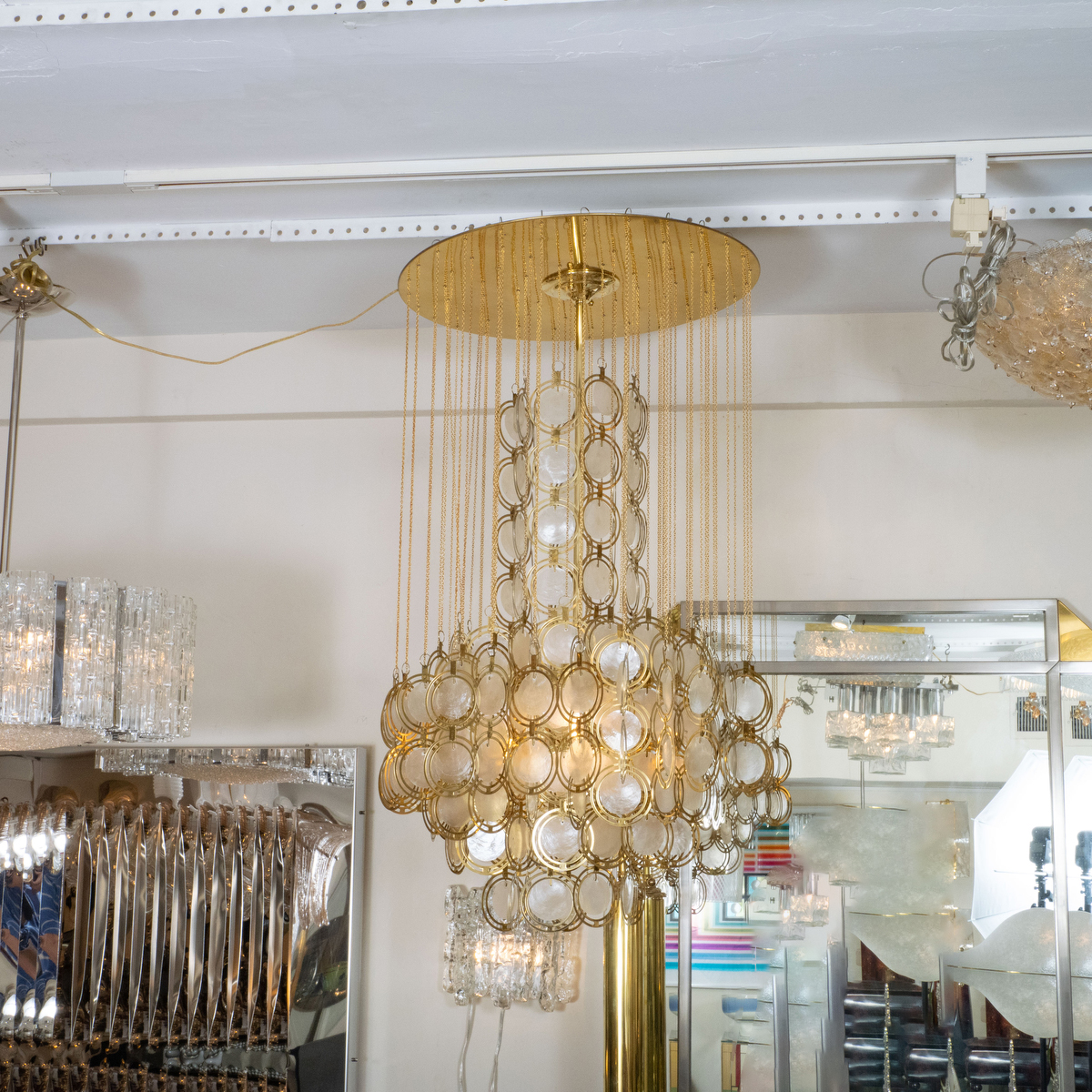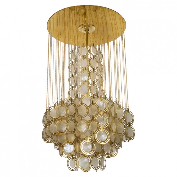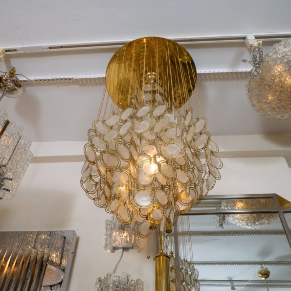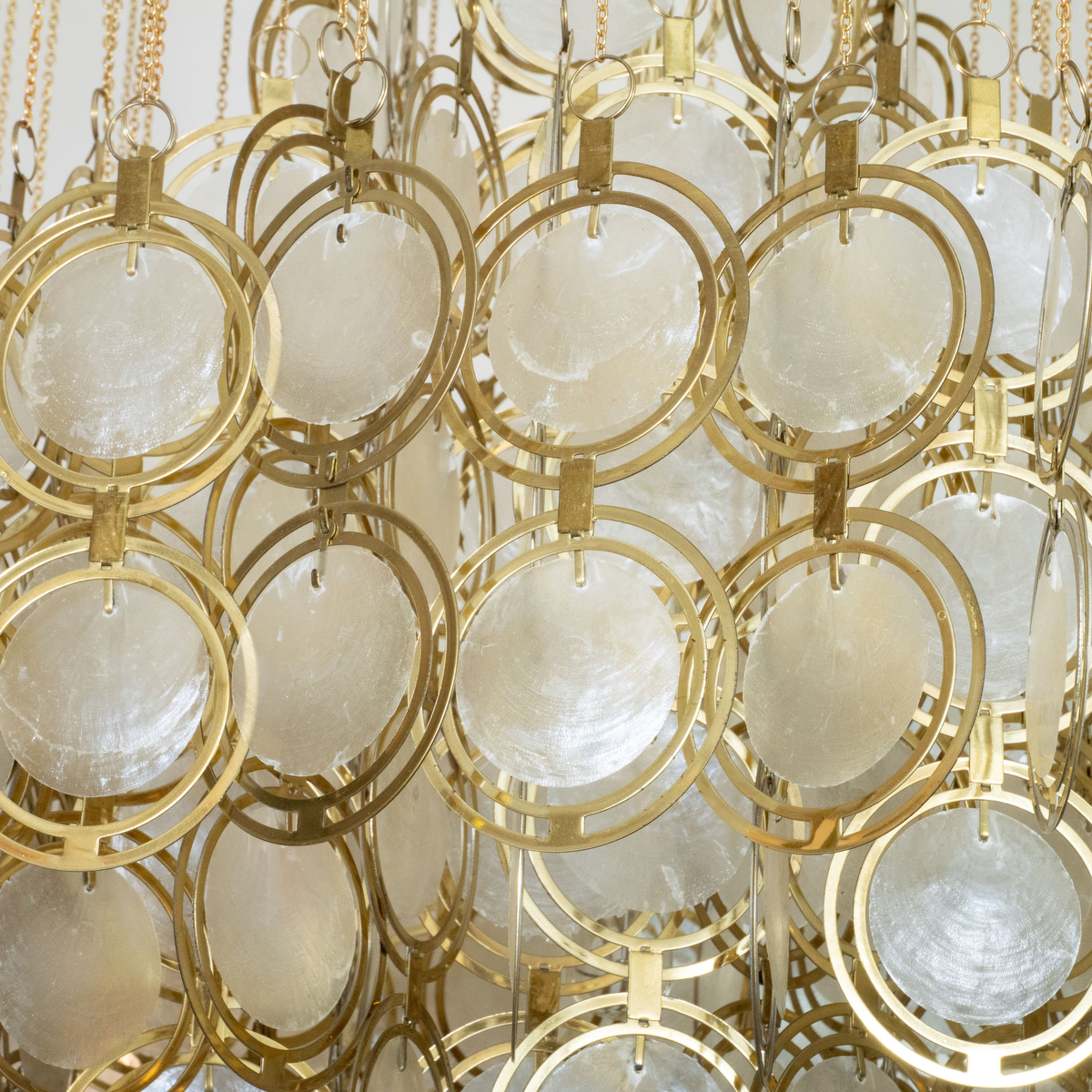 Circular polished brass capiz shell flush mount