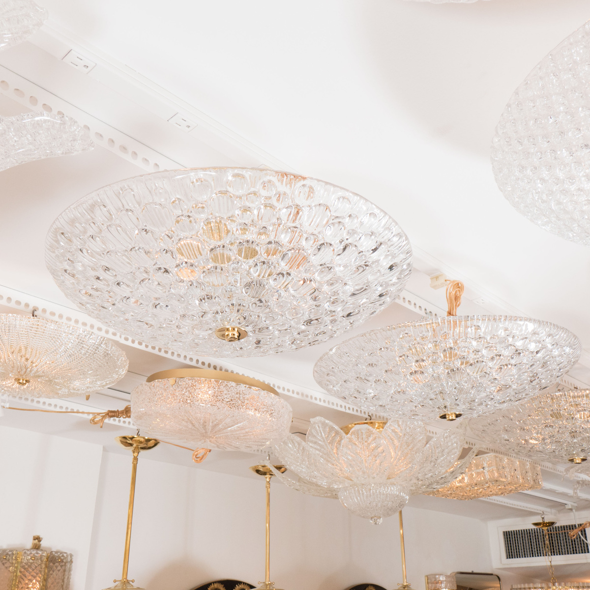 Glass flush mount with raised circular design
