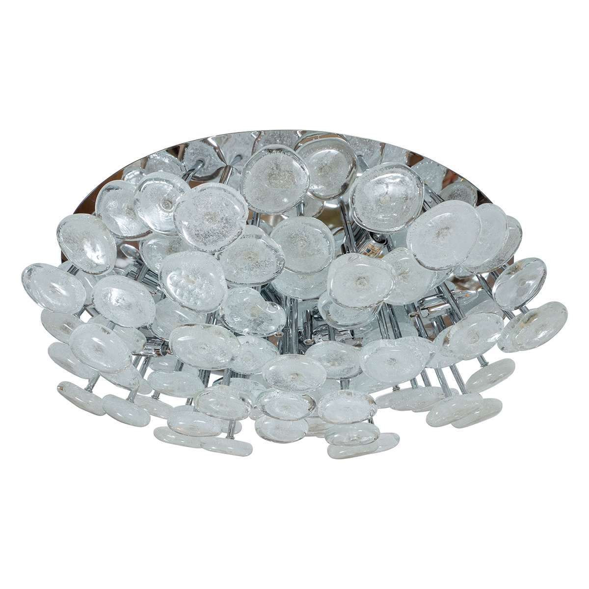 Nickel flush mount fixture with frosted white glass