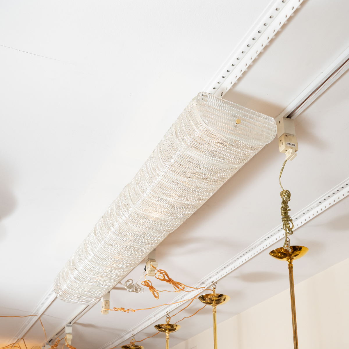 Slender linear textured glass flush mount