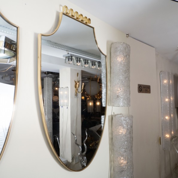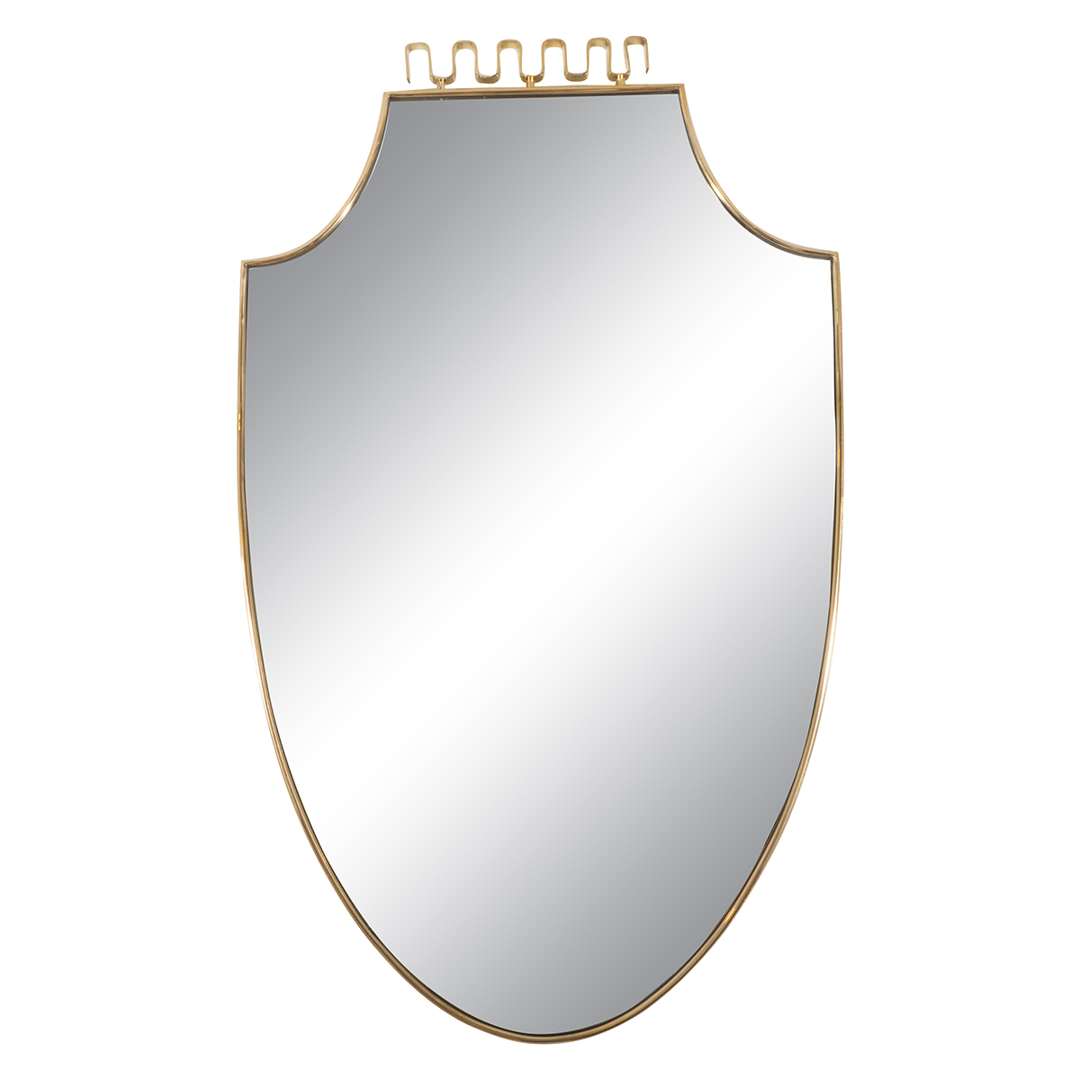 Shield form brass surround mirror