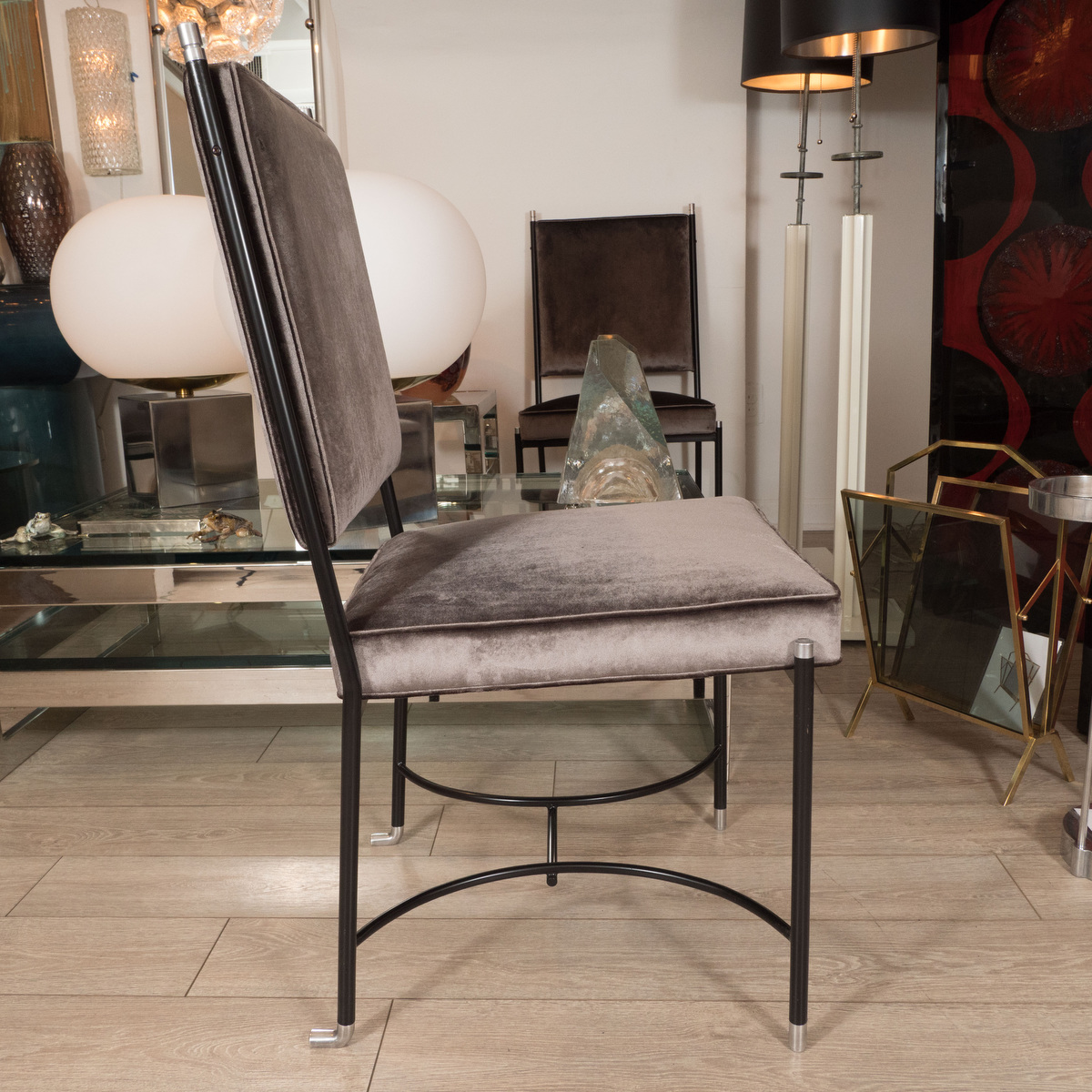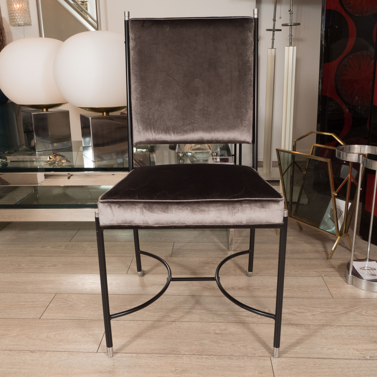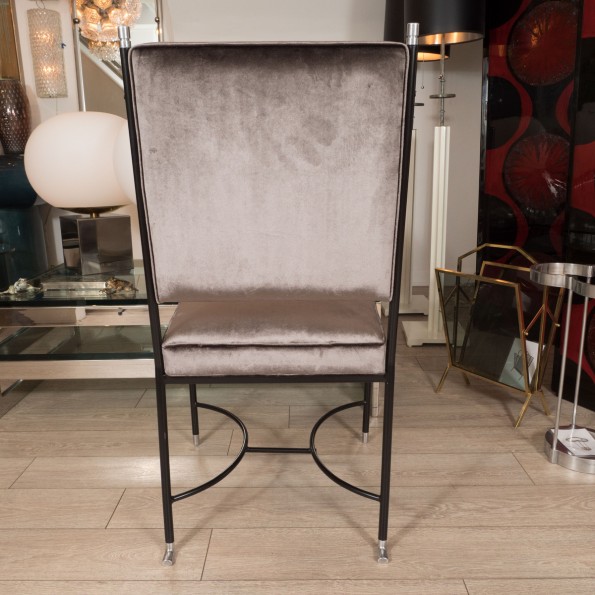 Upholstered chair with stylized blackened frame by Luigi Caccia Dominioni