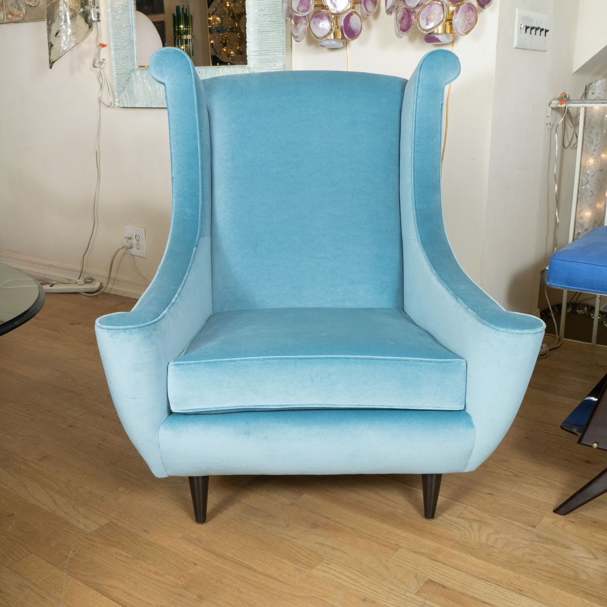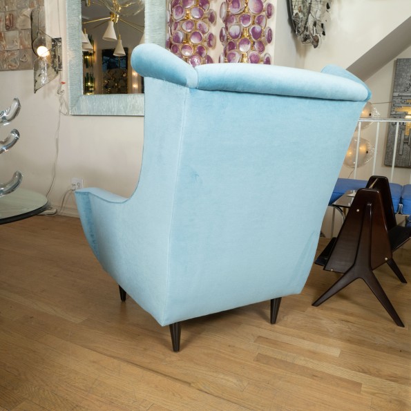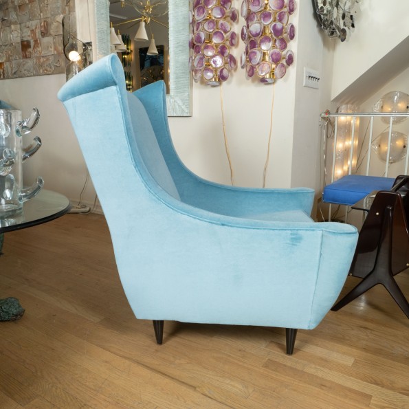 Pair of high back curvilinear armchairs