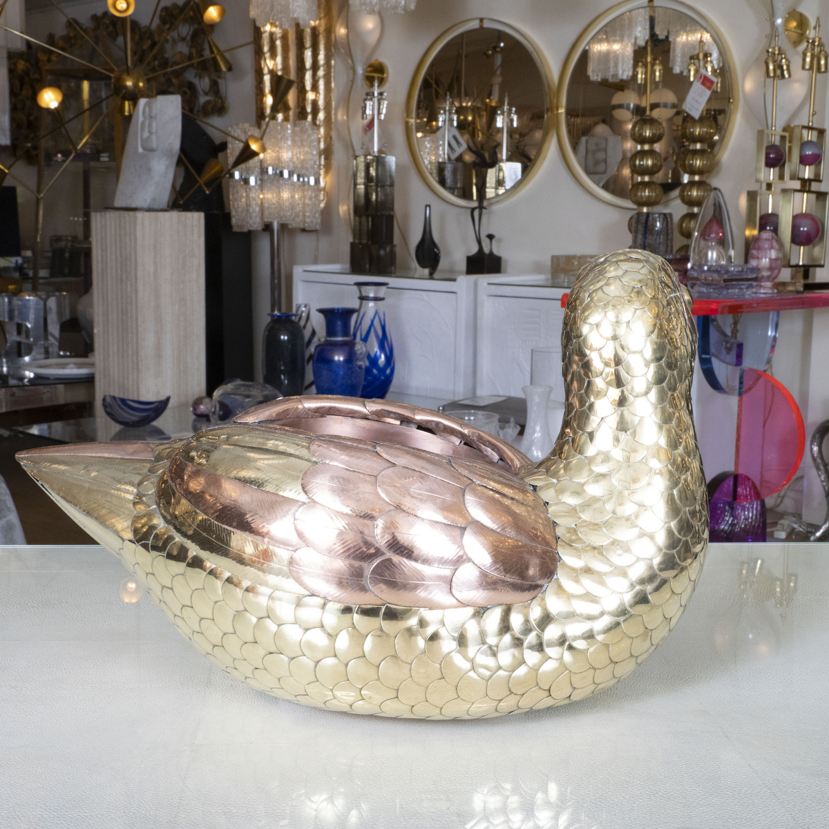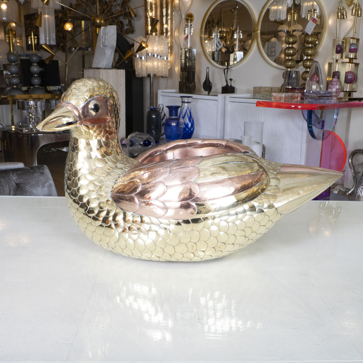 Brass and copper duck bowl by Sergio Bustamante