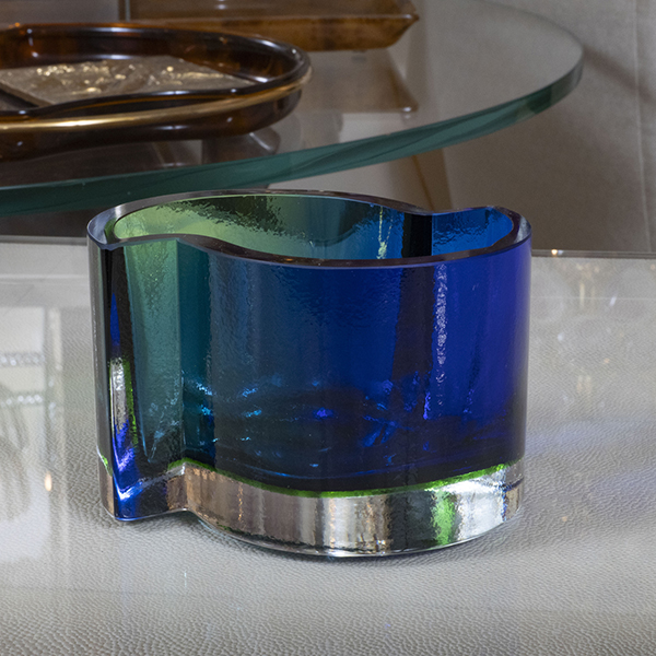 Modern form green and blue Murano glass bowl