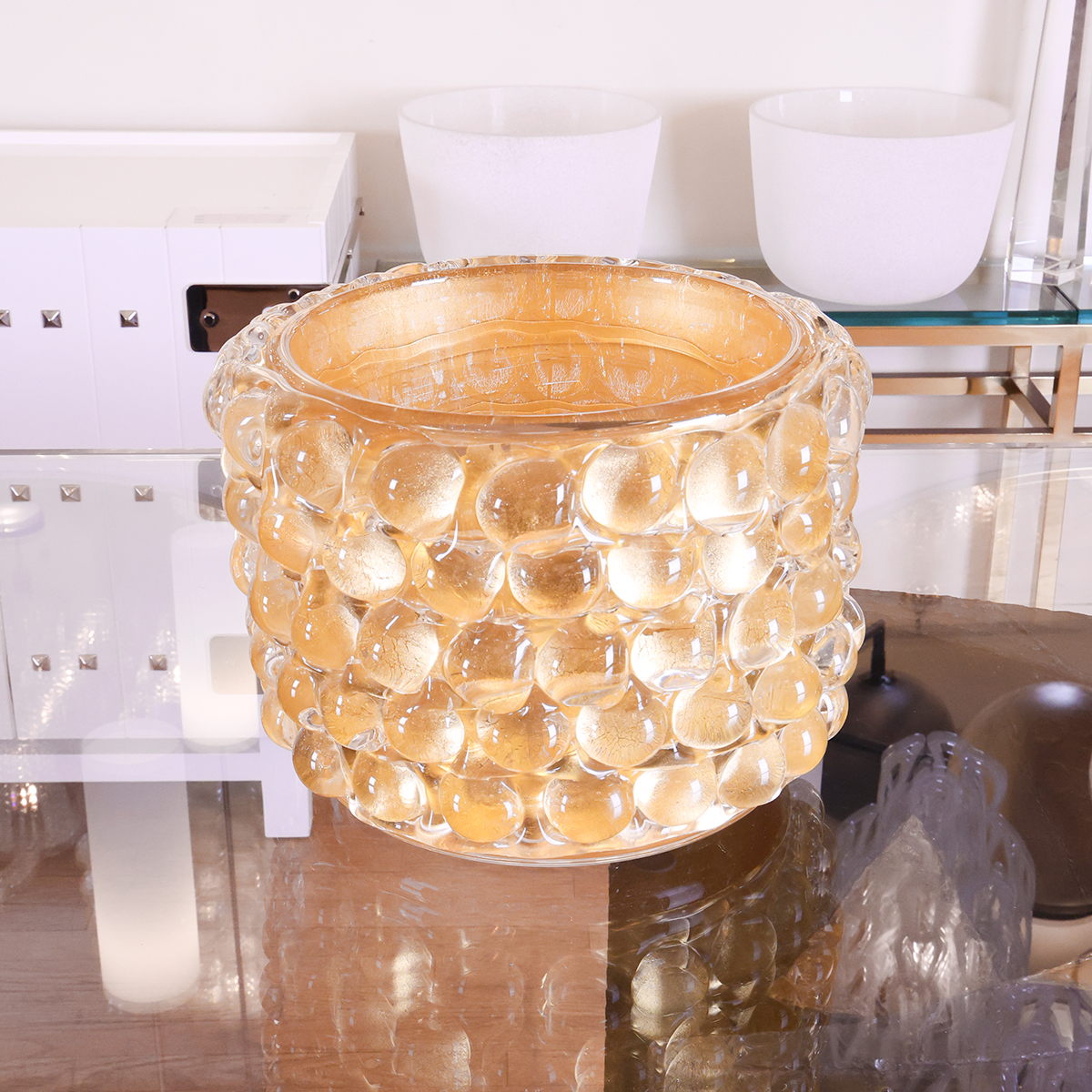 Monumental gold leaf Murano glass bowl by Fabiano Amadi