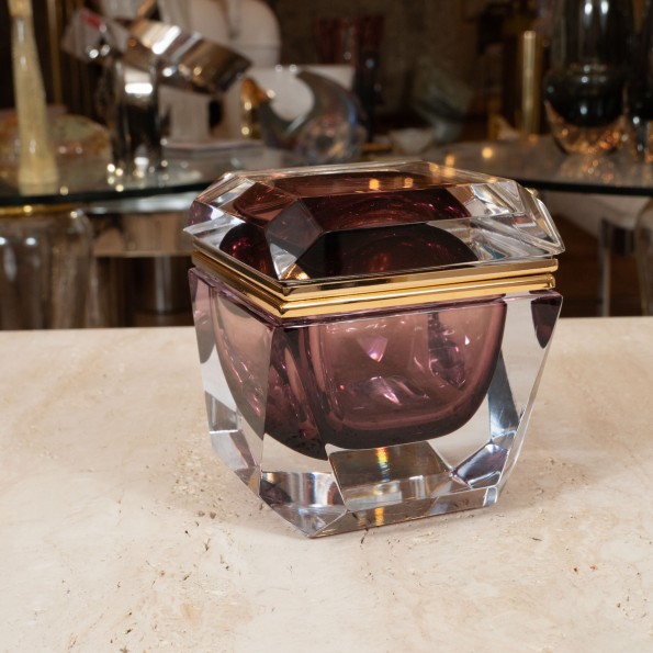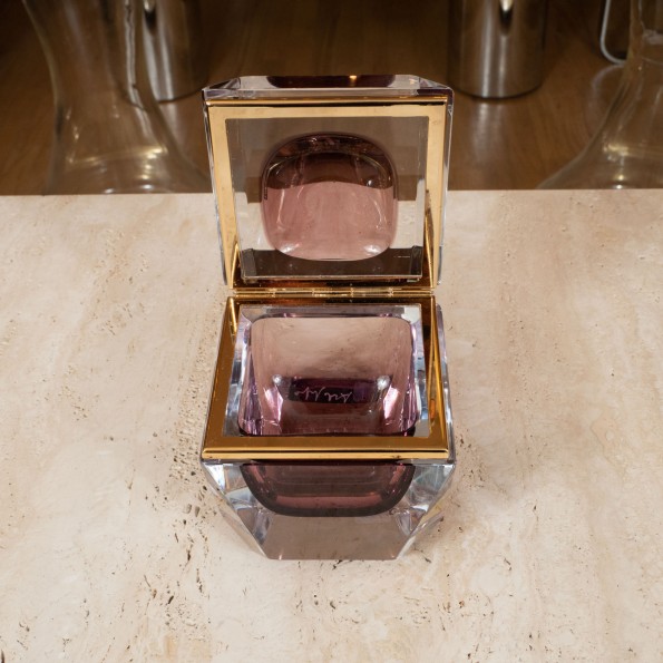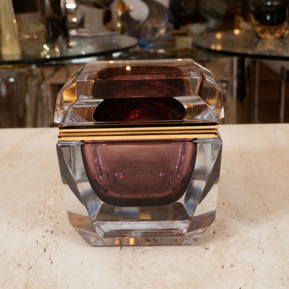 Small faceted square Murano glass box