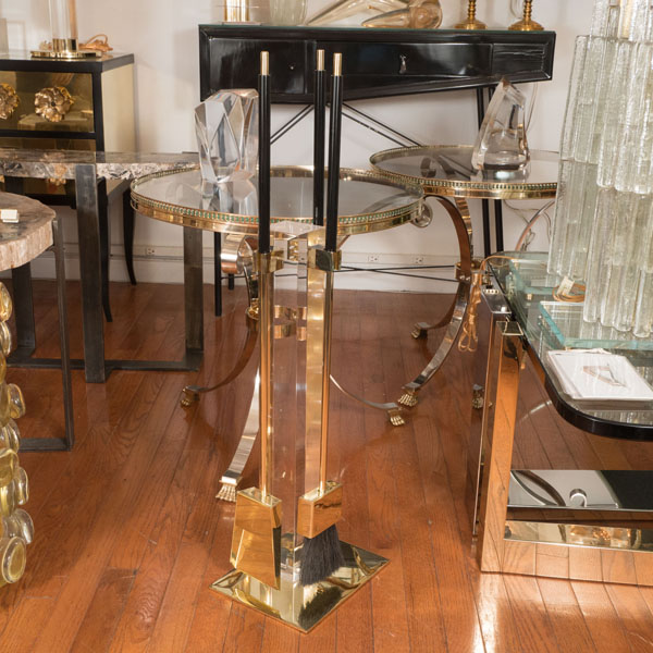 Brass and acrylic fire tool set by Albrizzi